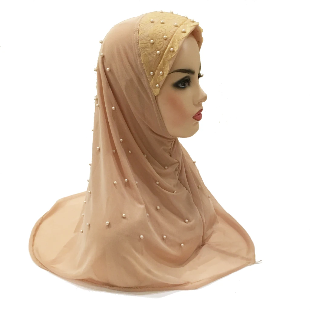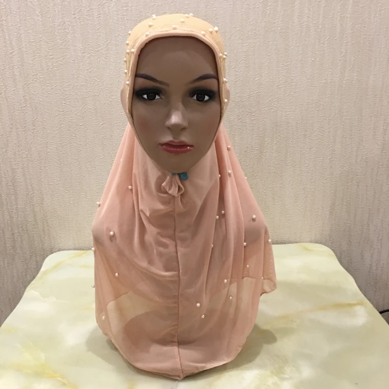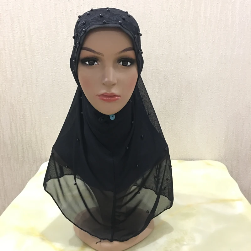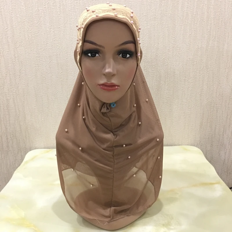 big girls adults soft net two layers muslim scarf islamic hijab hat amira pull on headwrap 10 years girl