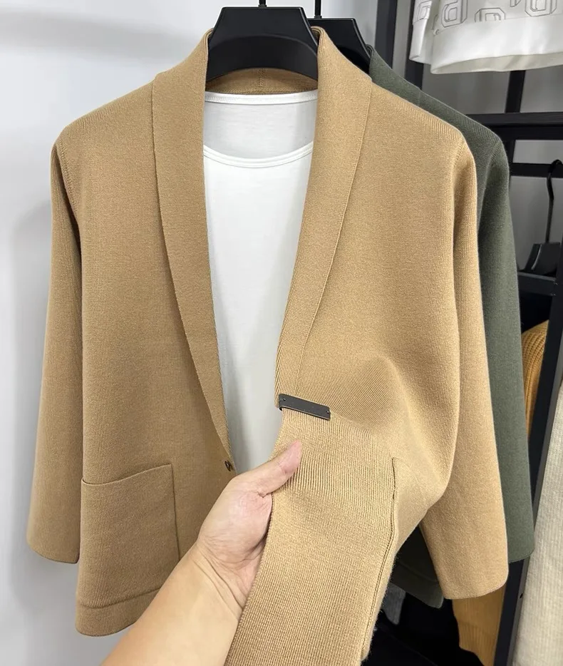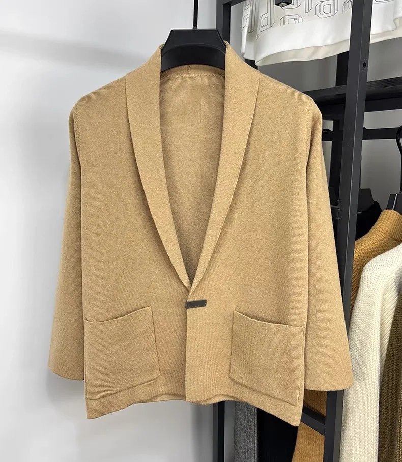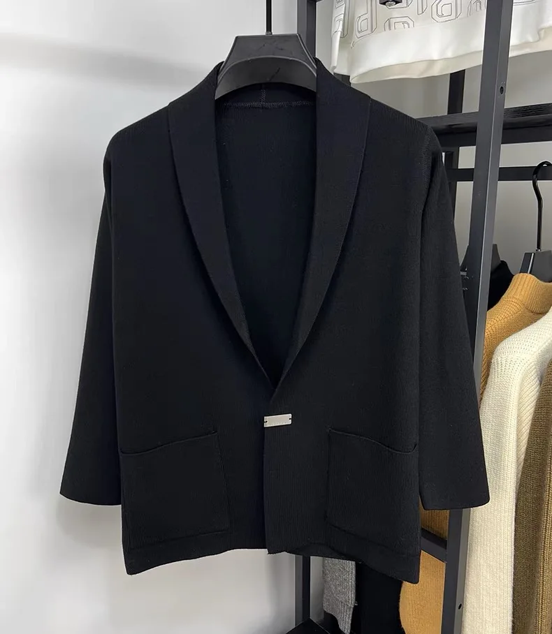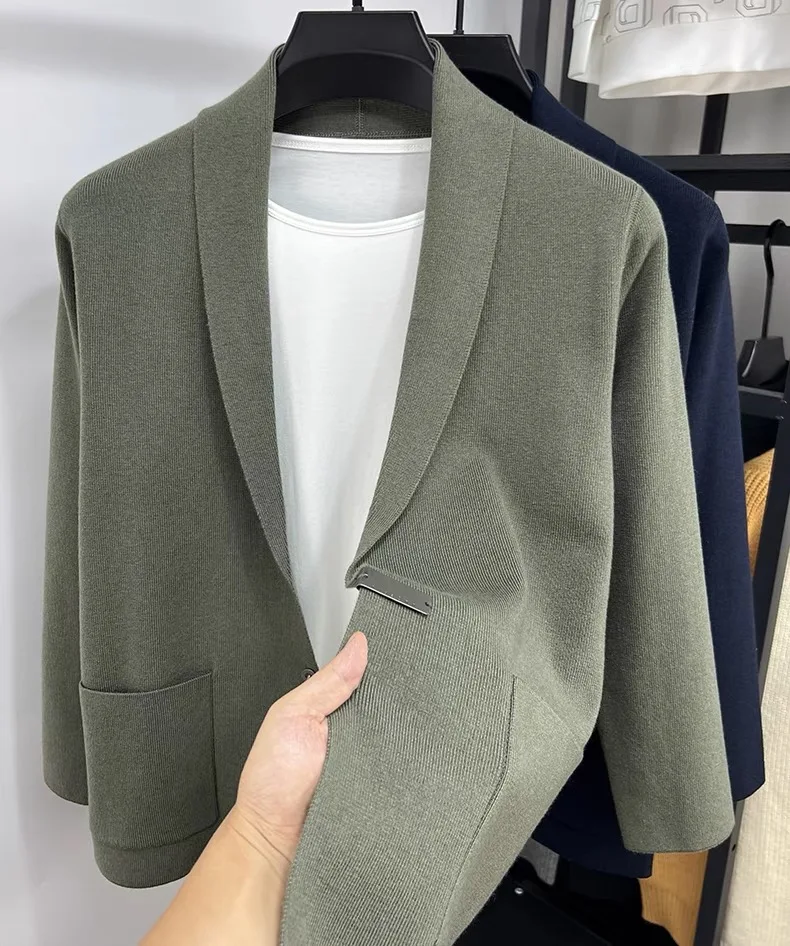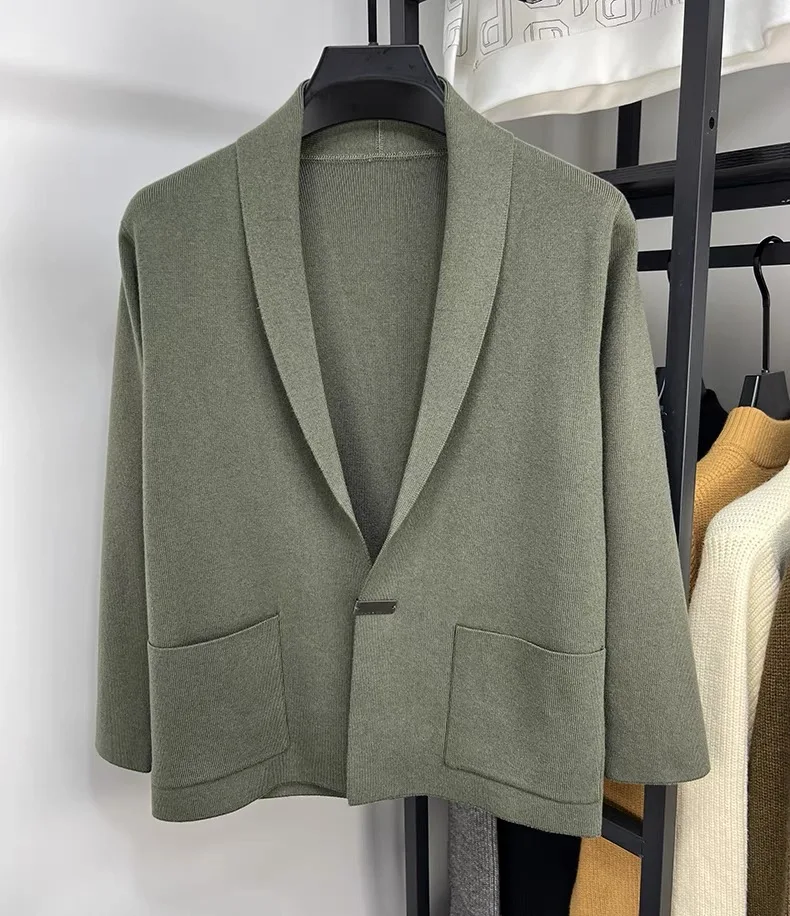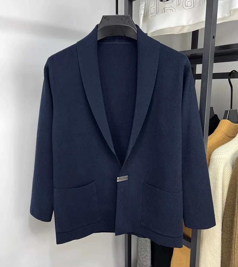 High end men fashion shawl collar knitted cardigan.