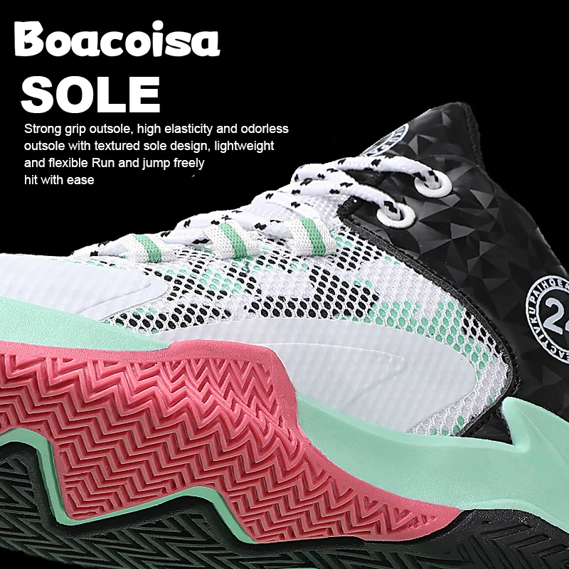 The mesh lining material provides breathability, keeping feet cool and dry during intense games or runs.