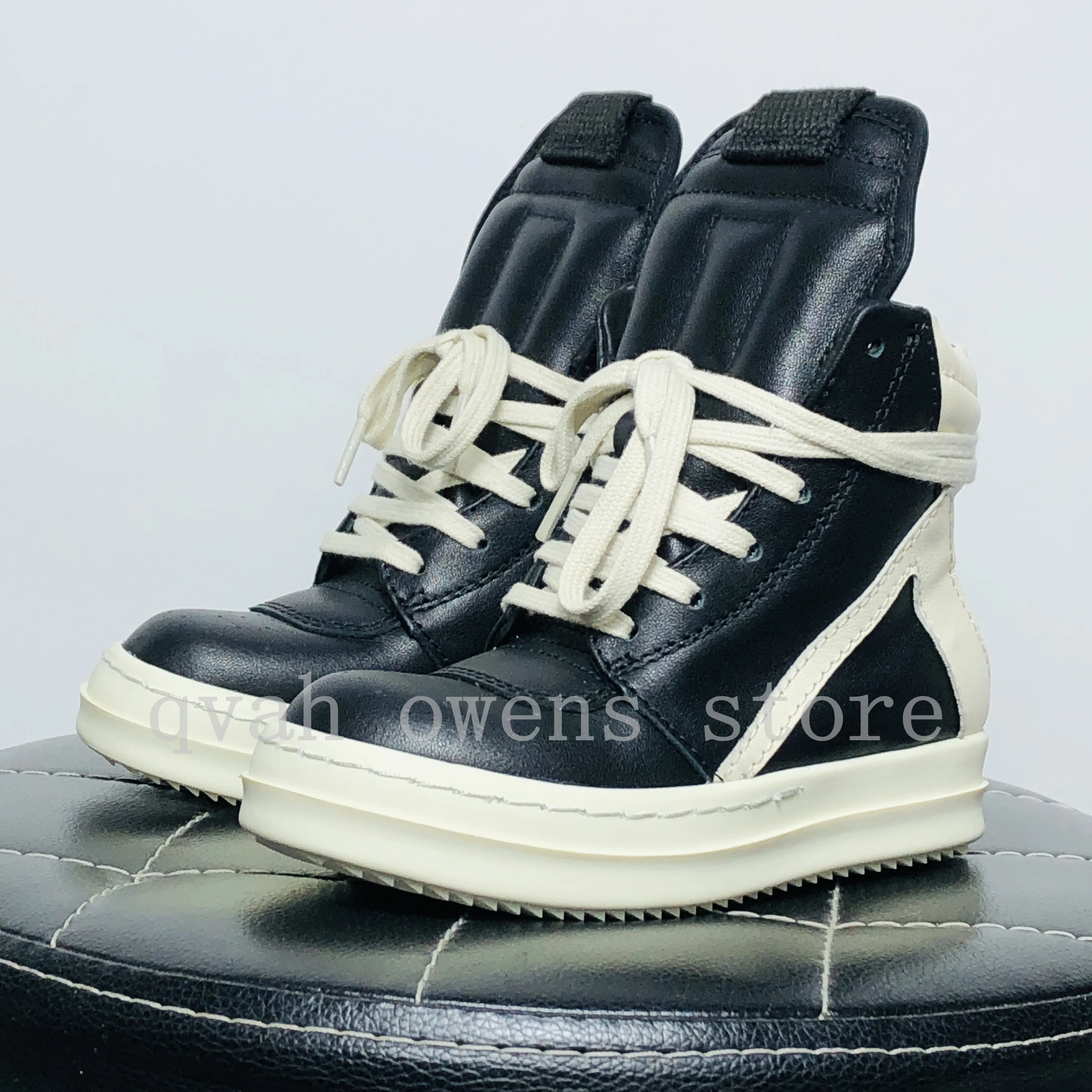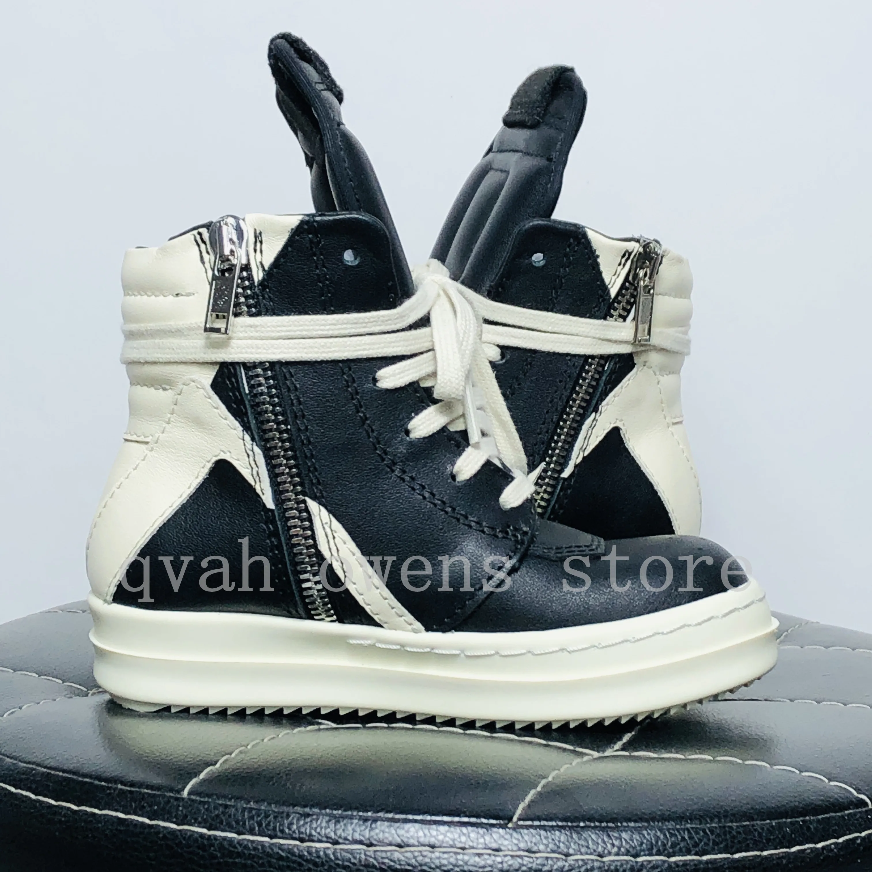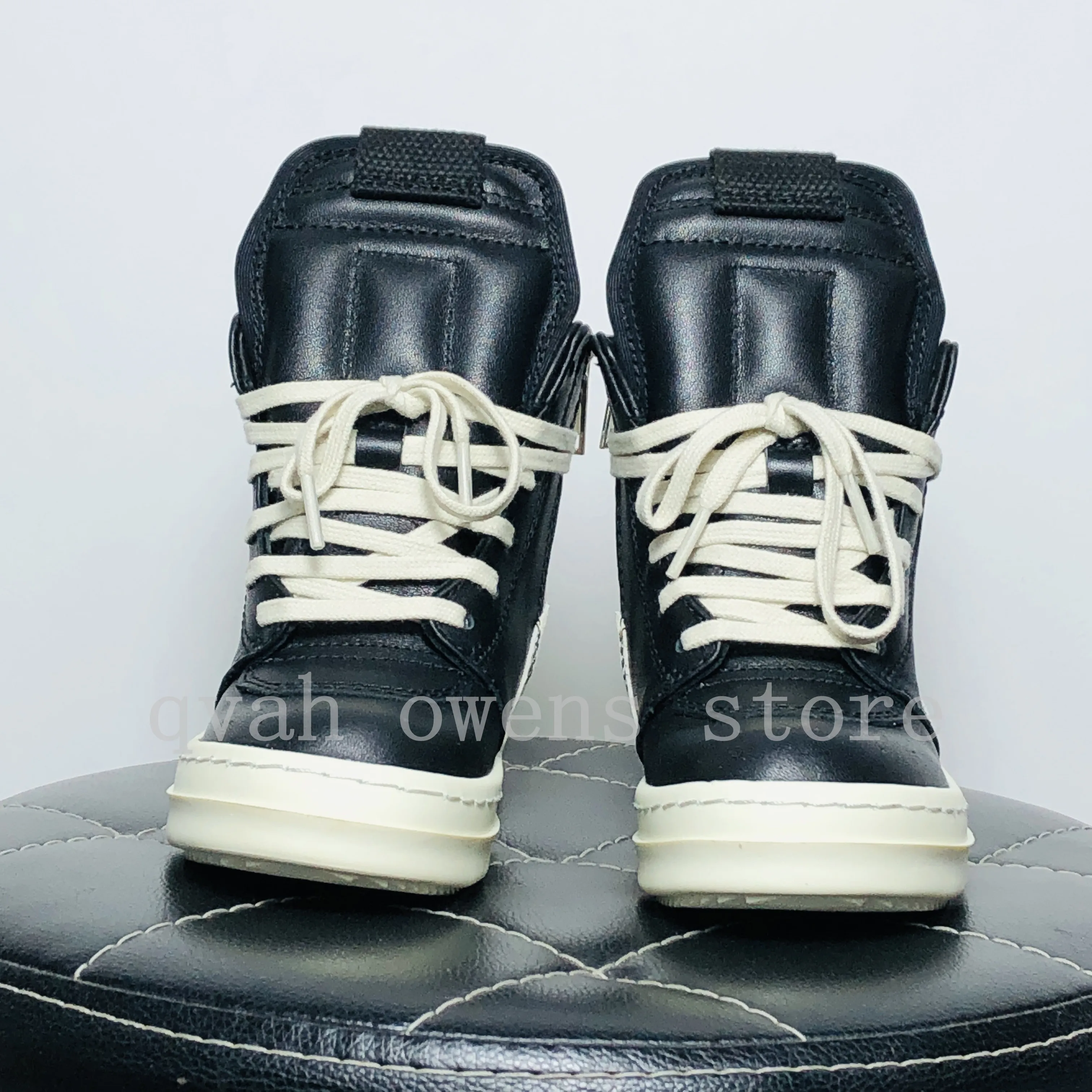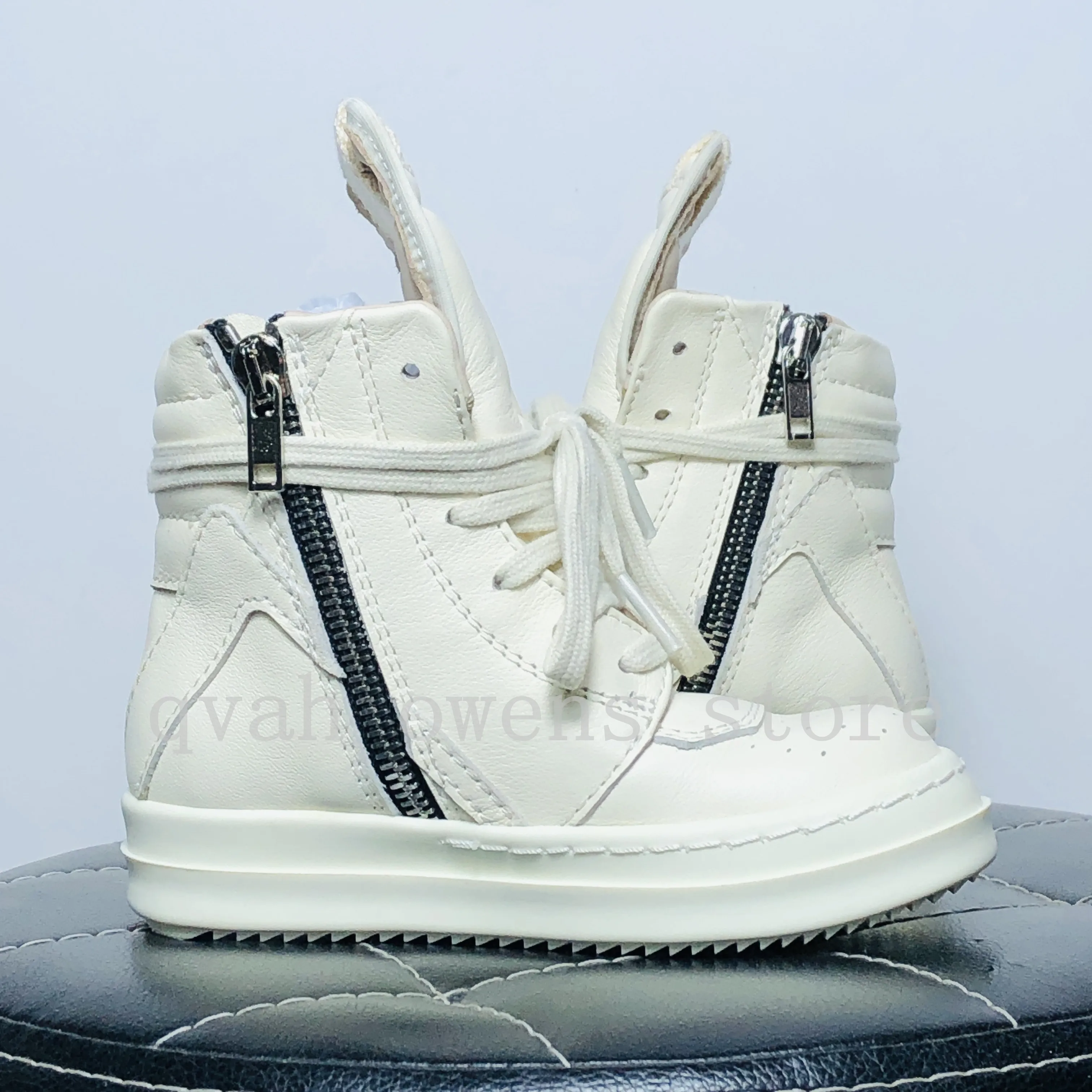 Qvah Owens Kids High Top Sneakers Girls Boys Leather Children Shoes Luxury Lace Up Casual Spring Streetwear Black White Boots