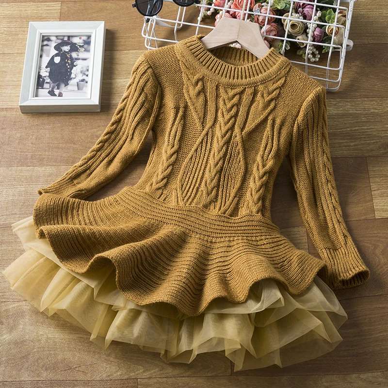 Knitted Sweater Girl's Dress for 3 to 8 Years Full Sleeve .