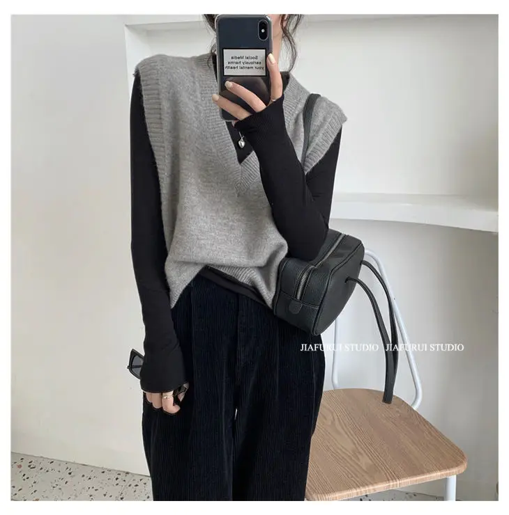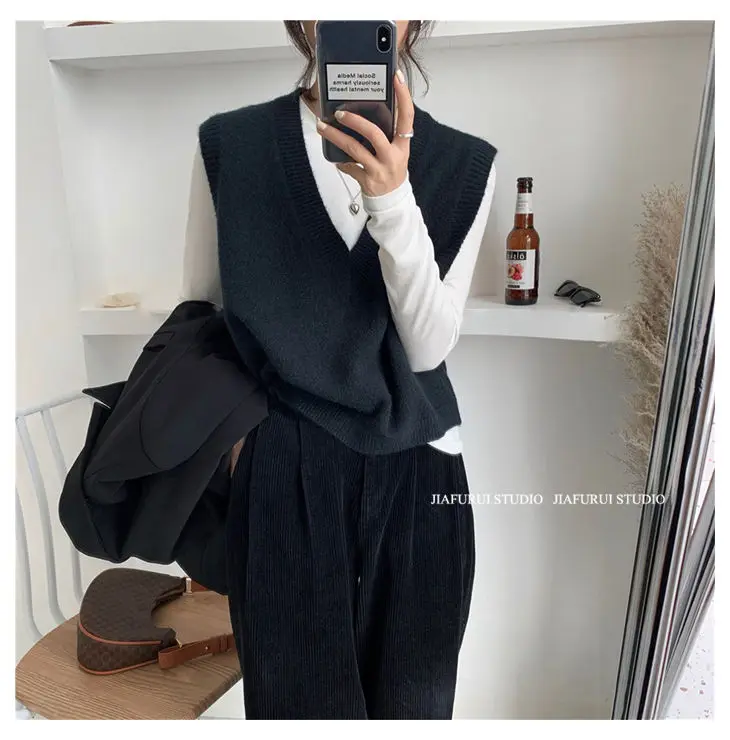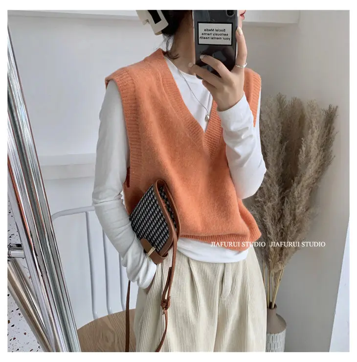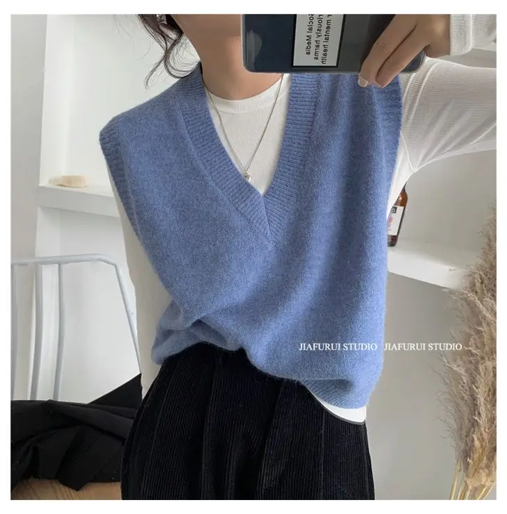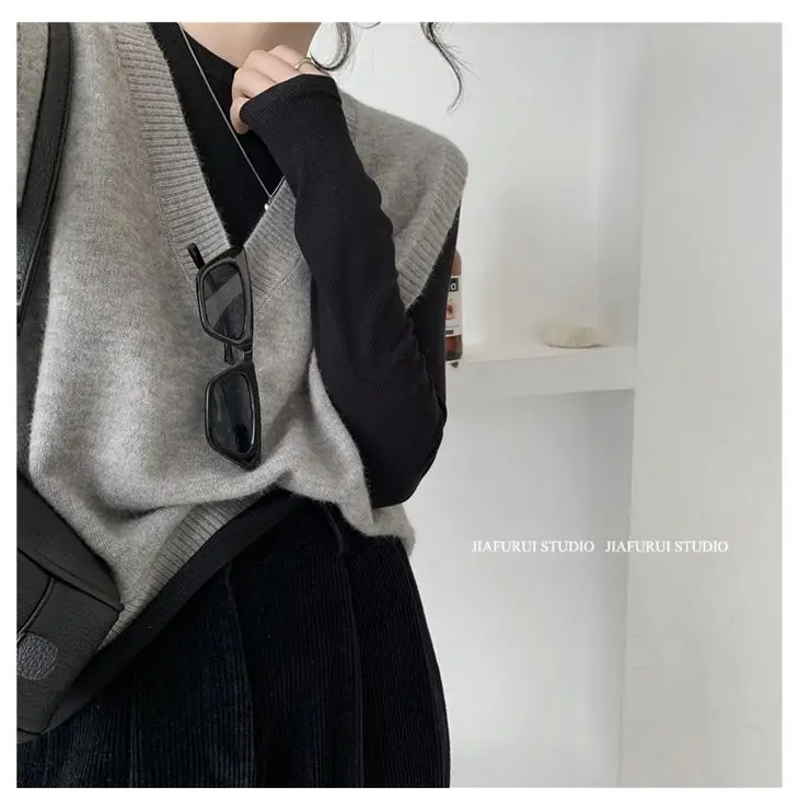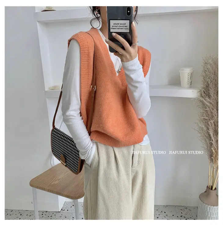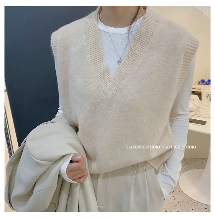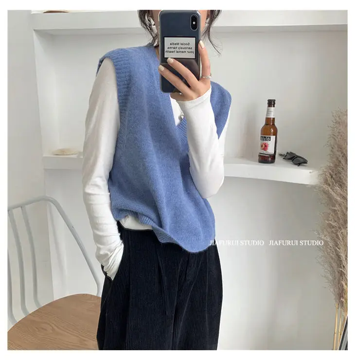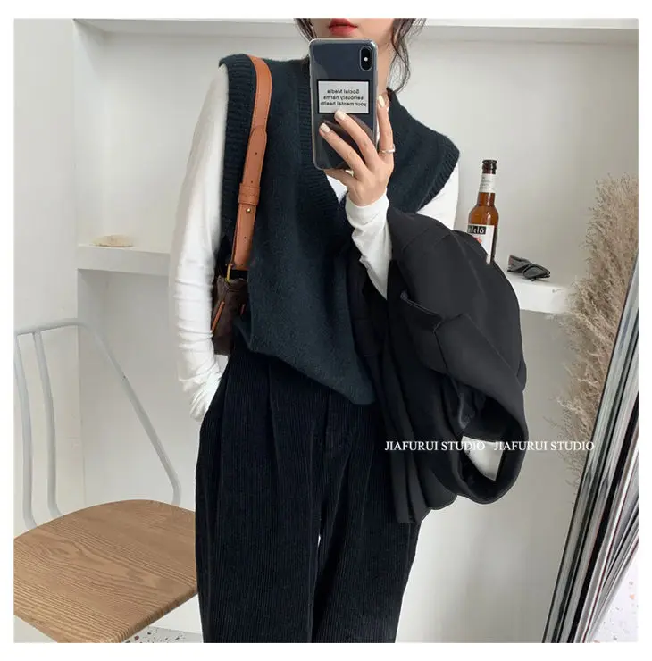 Sleeveless Knitted Sweater Vests Women Casual Solid Loose Outerwear .