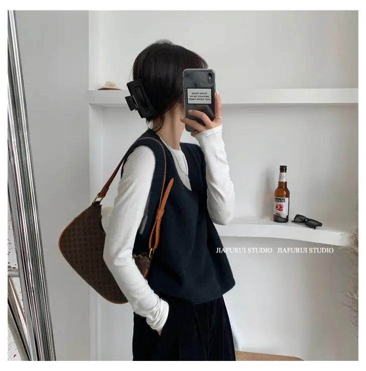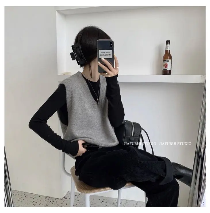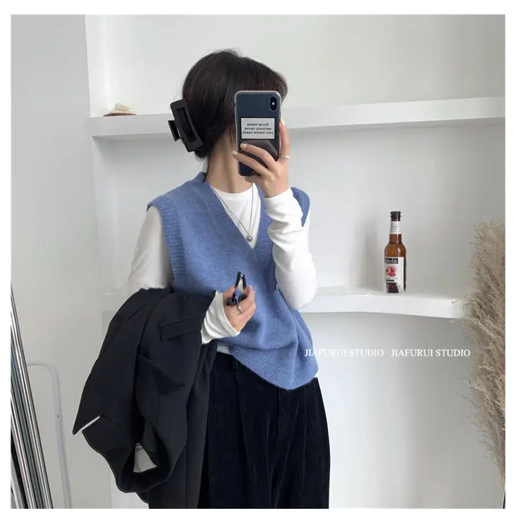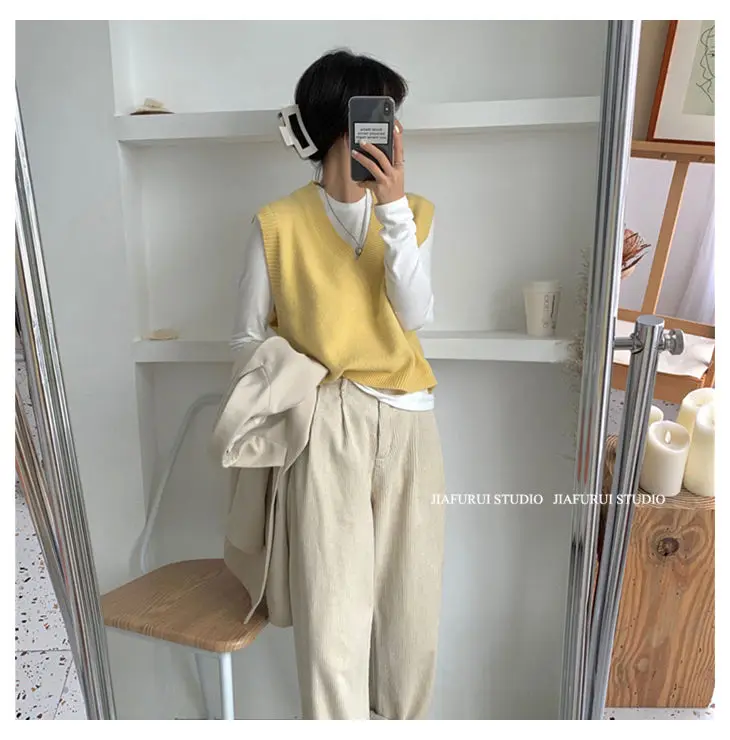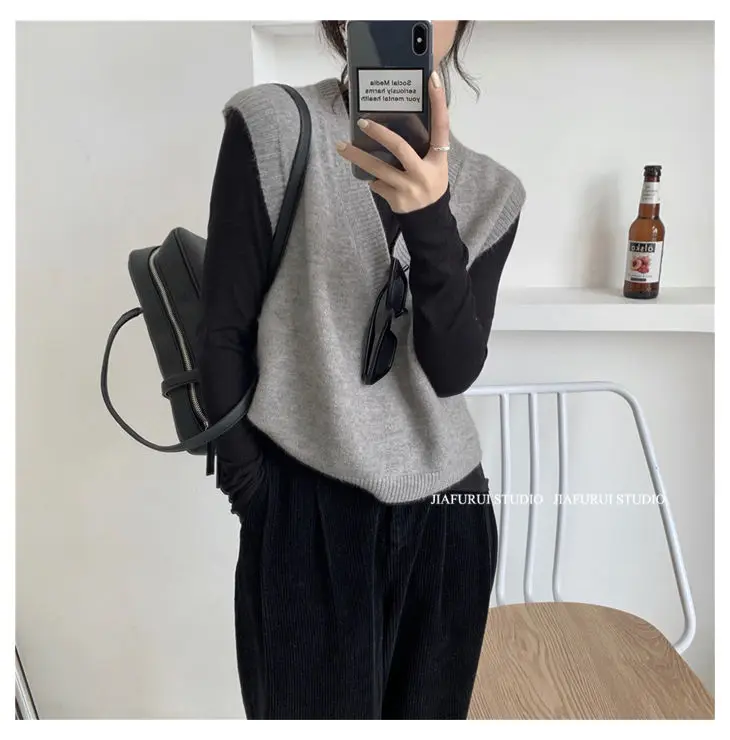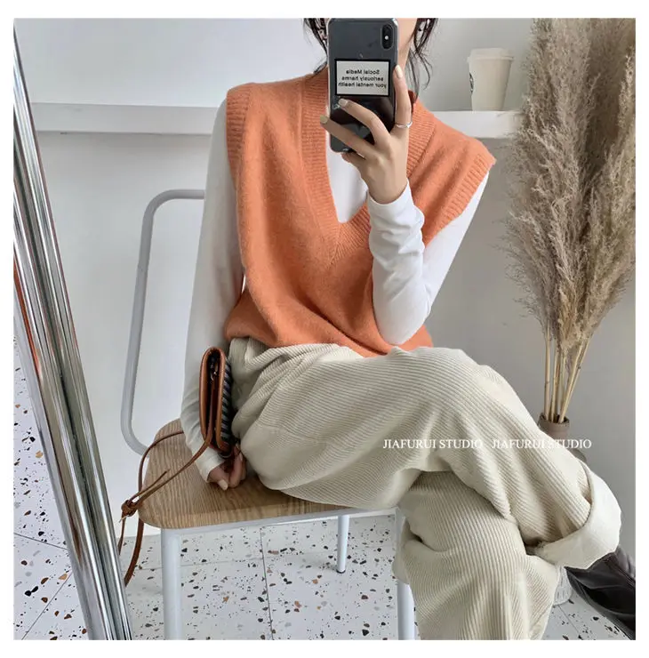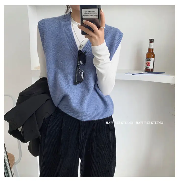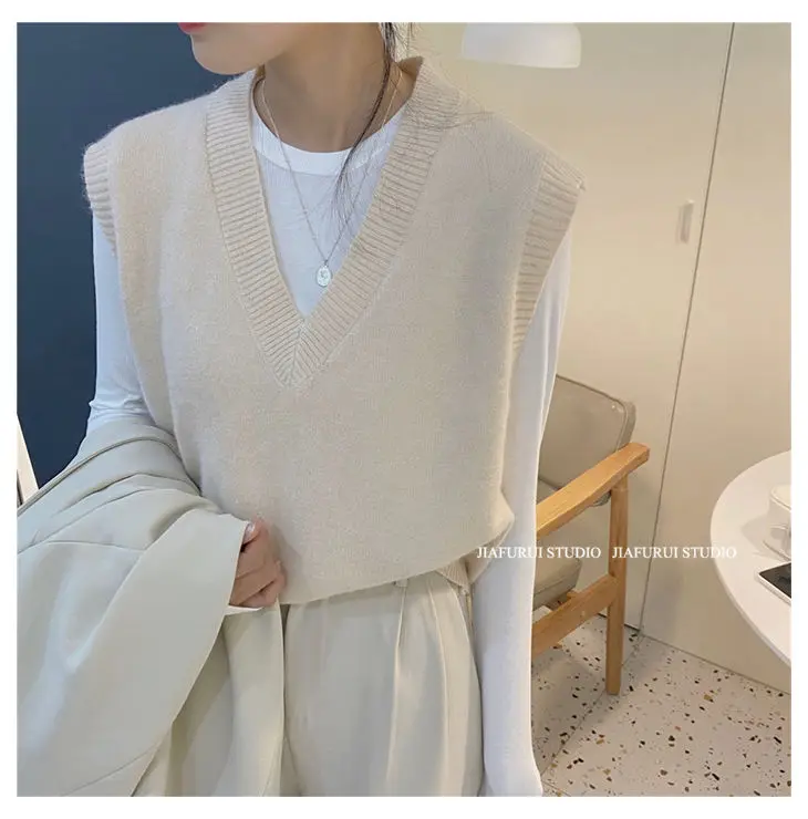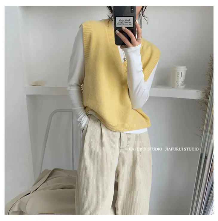 Sleeveless Knitted Sweater Vests Women Casual Solid Loose Outerwear .
