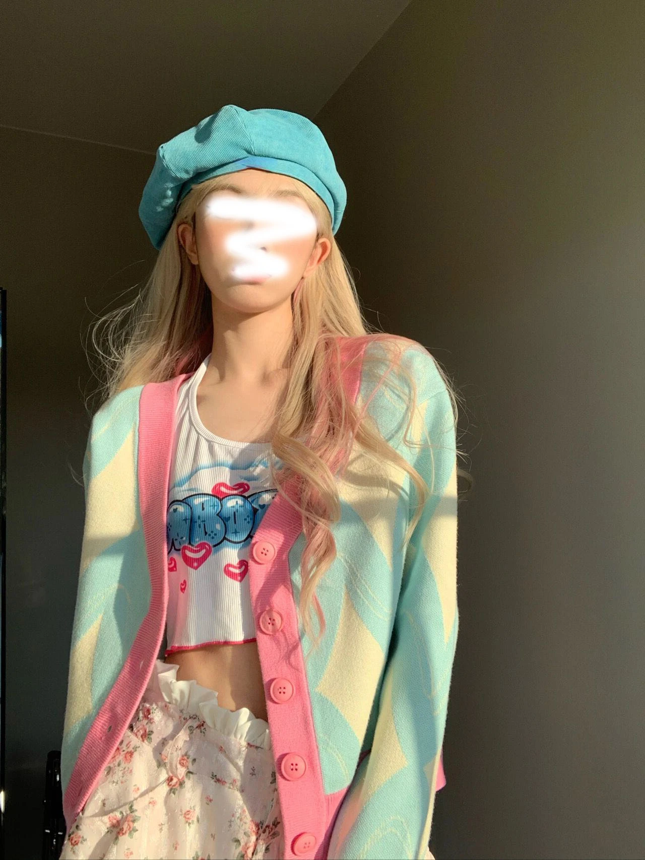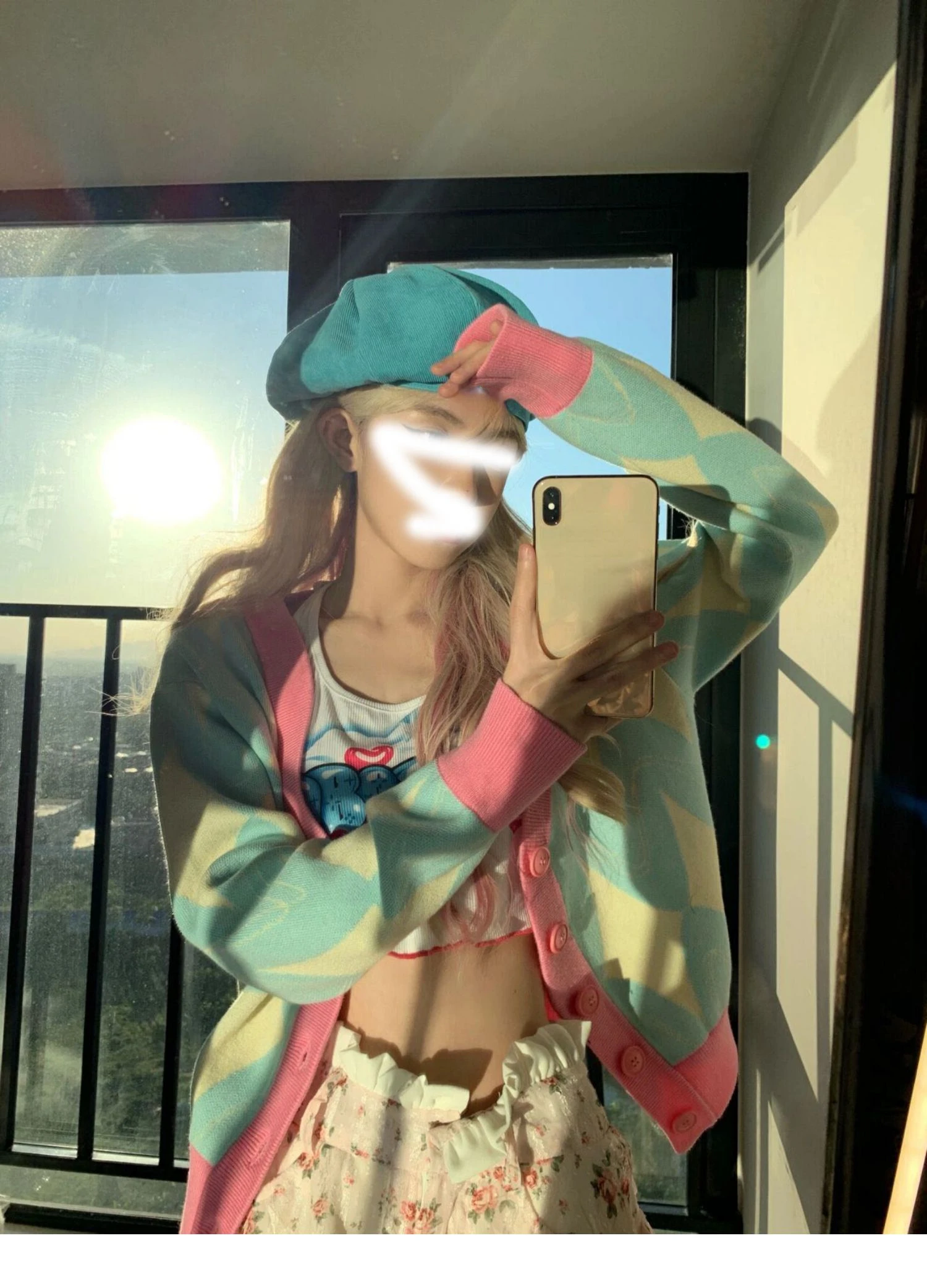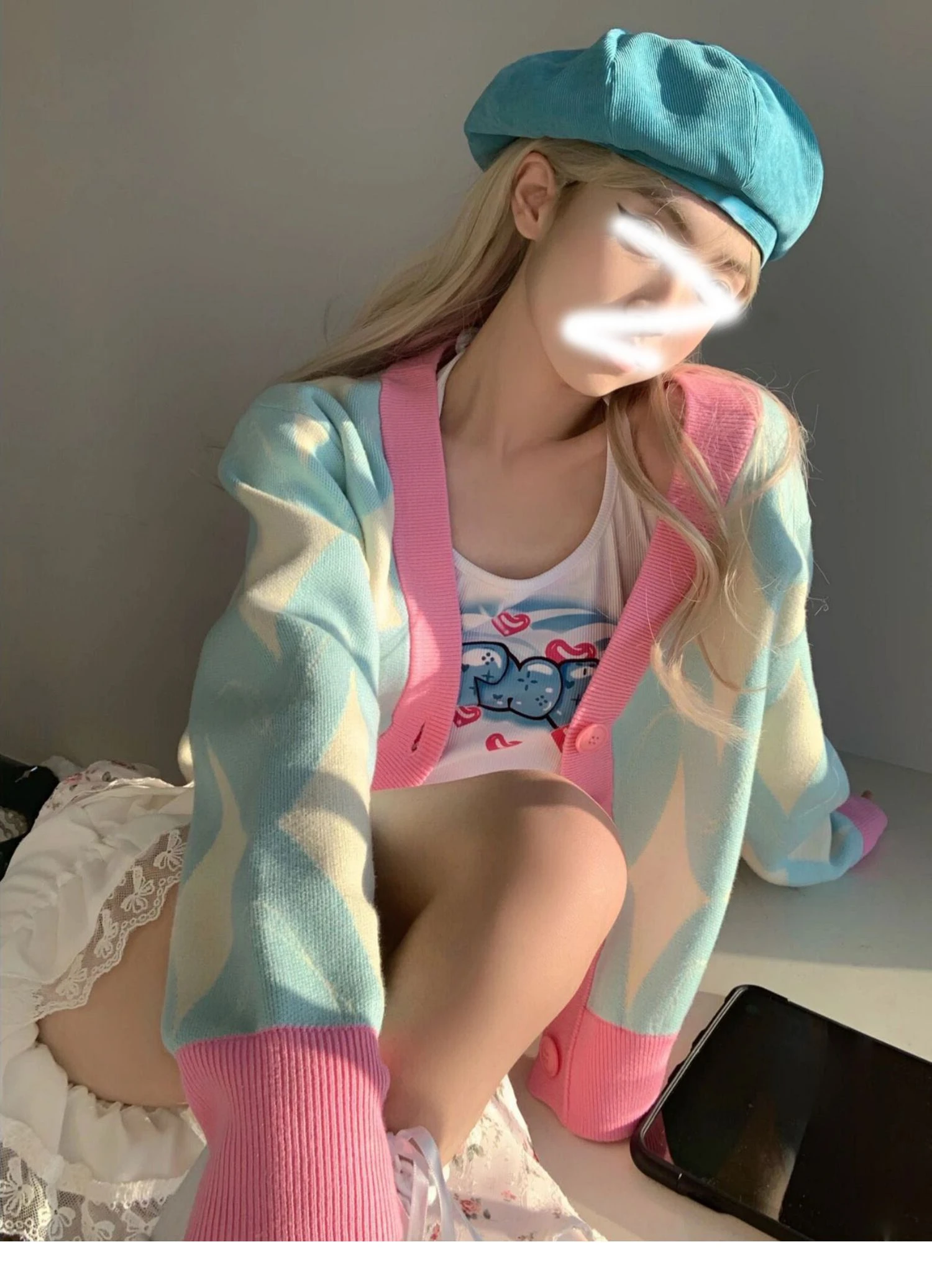 KOSAHIKI Women Cardigan Knitted Sweater Loose Single .
