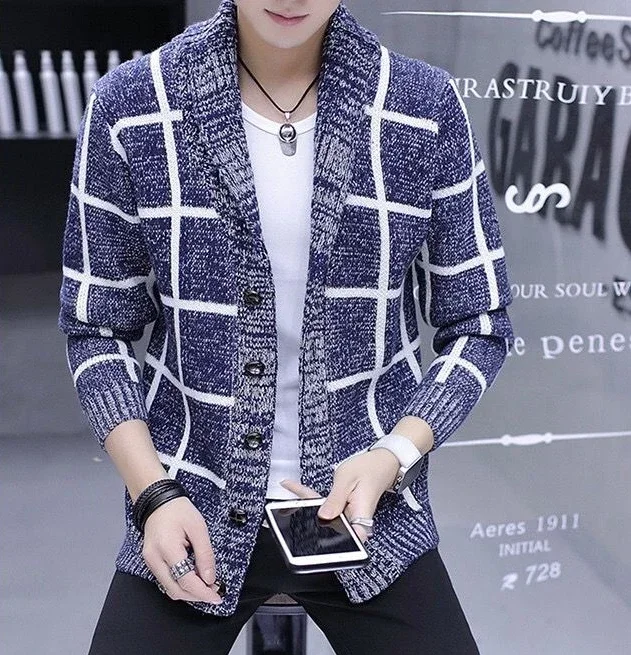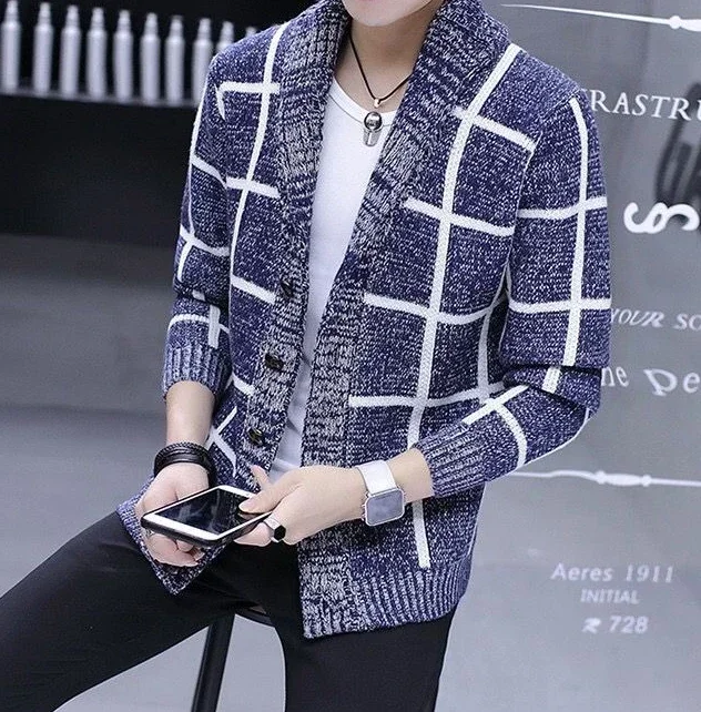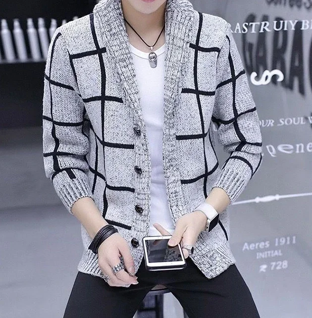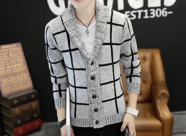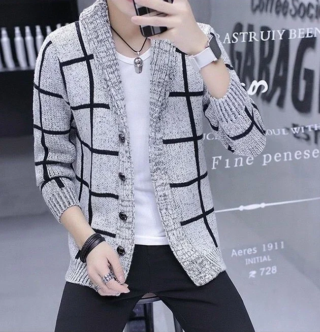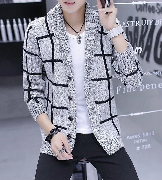 Man Clothes Cardigan Knitted Sweaters for Men No Hoodie Patchwork.