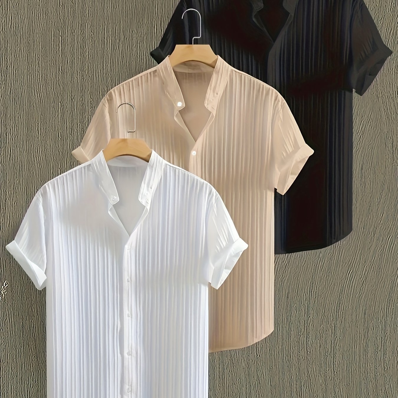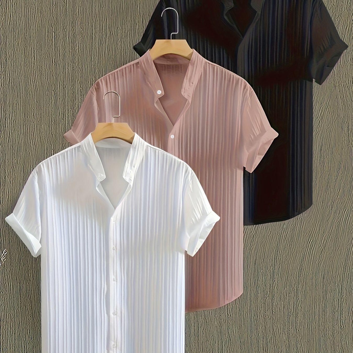 Men's 3pcs Casual Short Sleeve Button-Up Shirts Set .