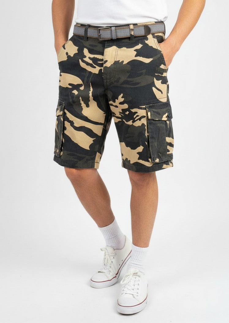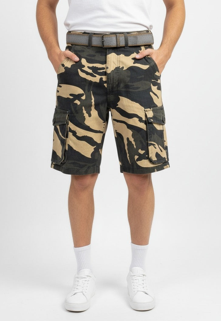 Men's Army Print 6 Pocket Shorts with Belt I MH