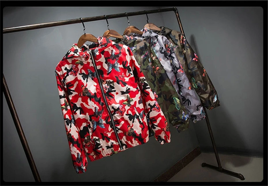 Mens Casual Camouflage Hooded Jacket Autumn Butterfly .
