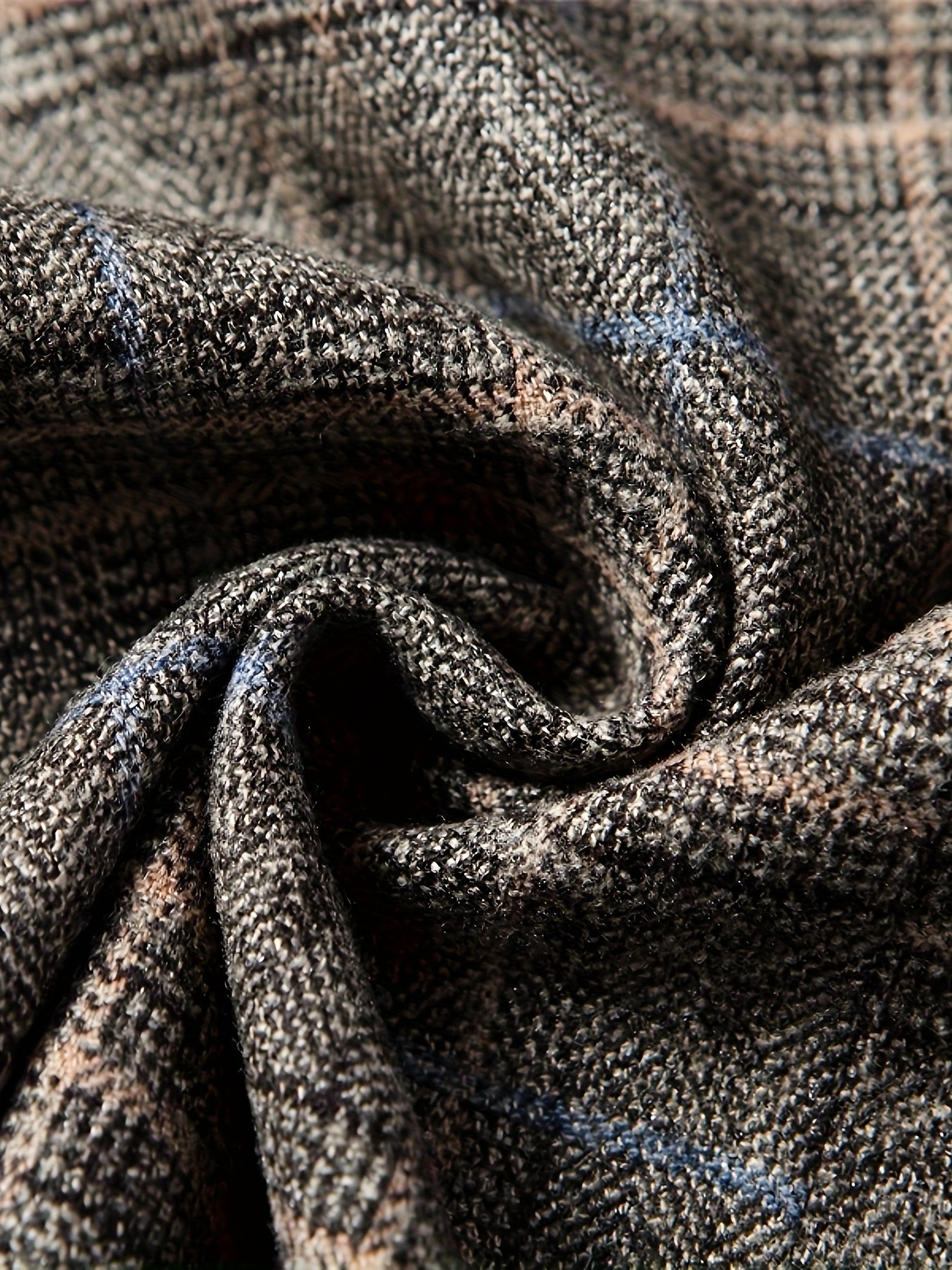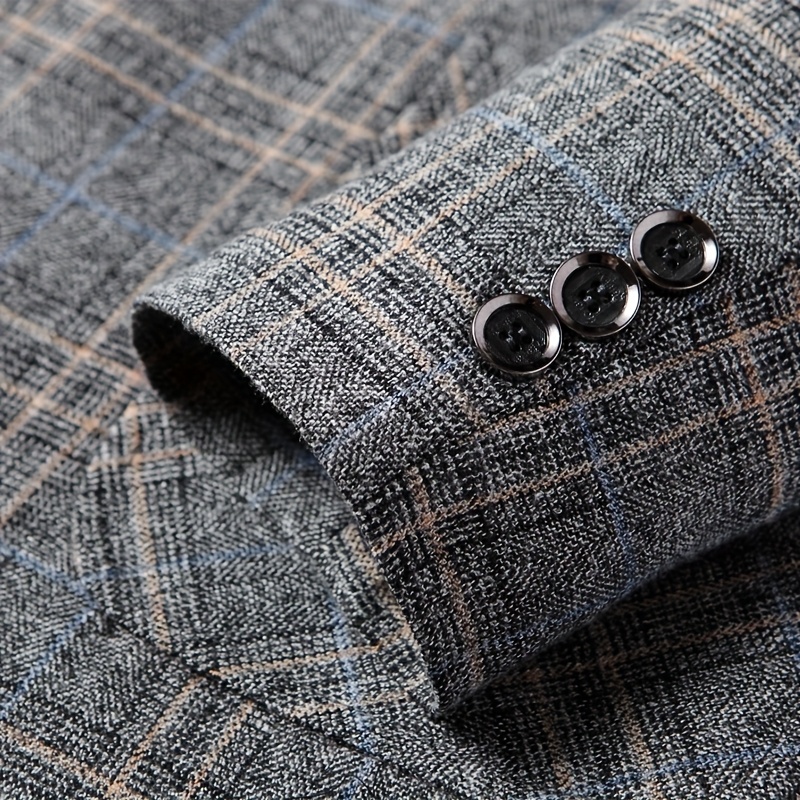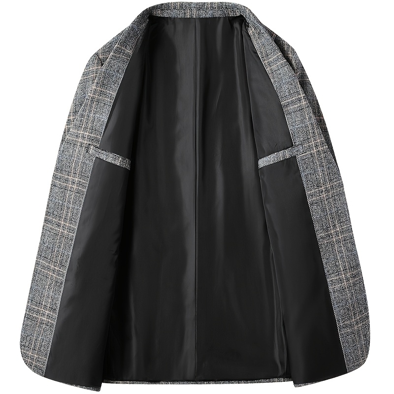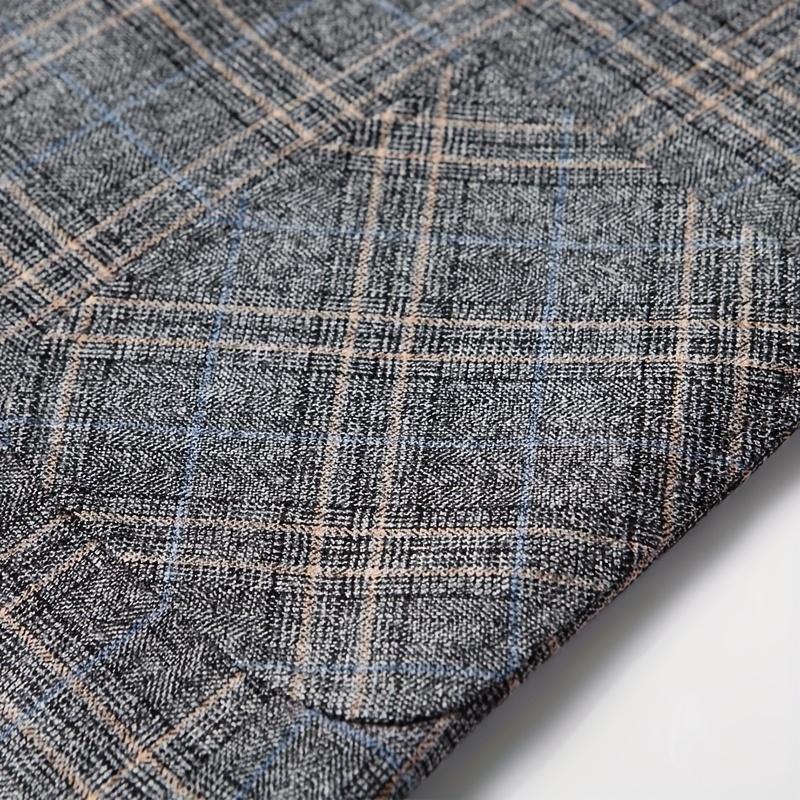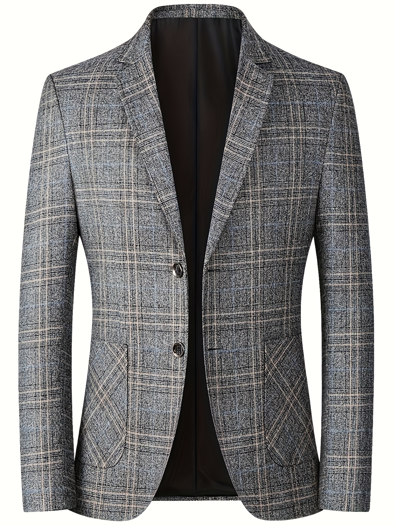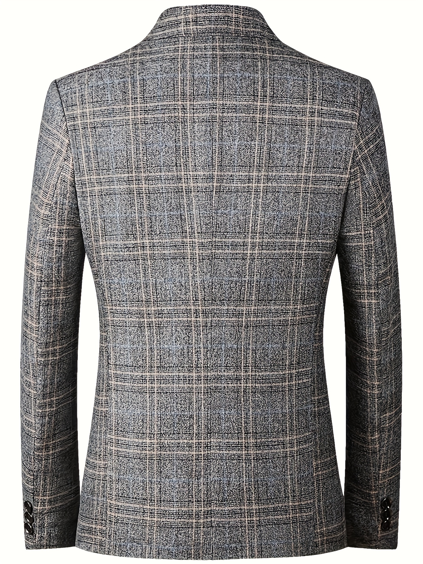 Men'S Checked Pattern Blazer with Pockets - Formal Two-Button Lapel,
