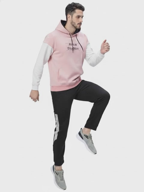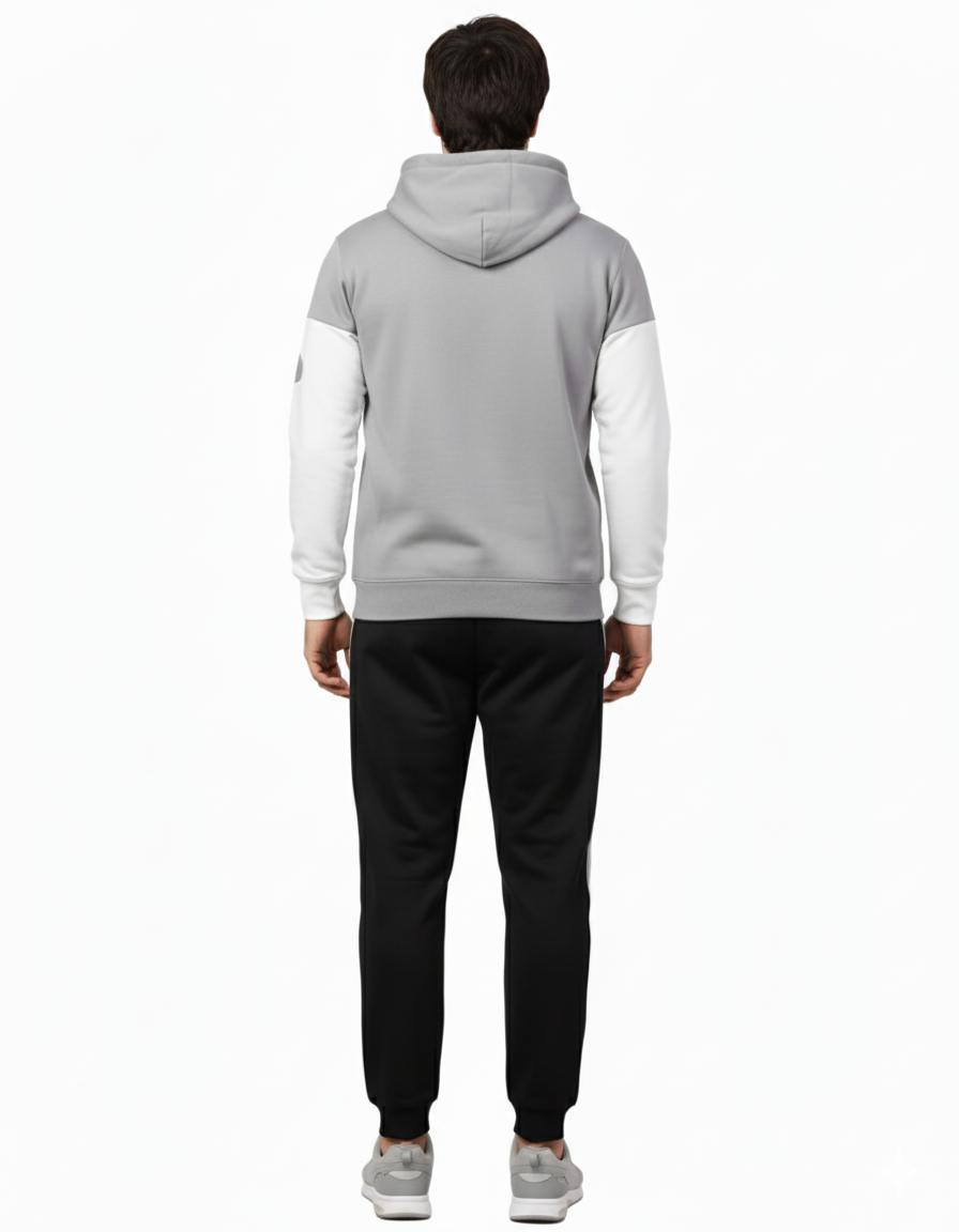 Description: A stylish men's leisurewear tracksuit set featuring a Black and white color-block hoodie with an "Ance Studios"(17–24 Years) print on the chest, paired with light grey jogger sweatpants. The minimalist, contemporary design is characteristic of the popular Ance Studios aesthetic. Perfect for a streetwear look or comfortable casual wear.