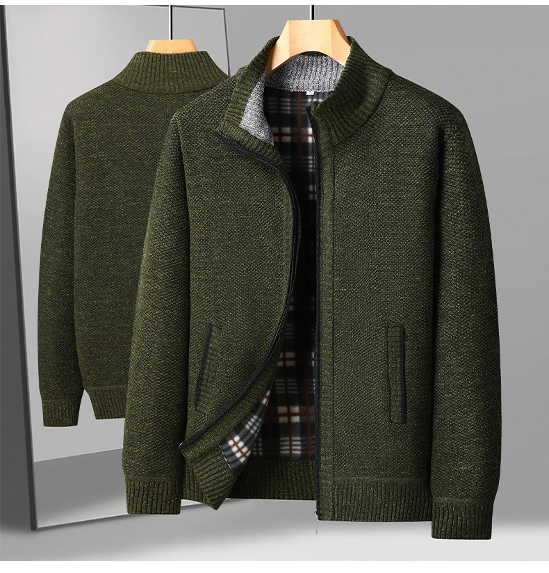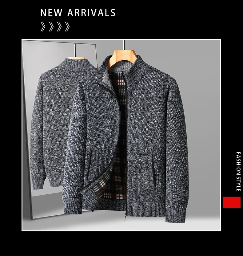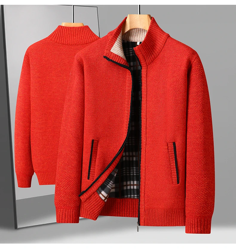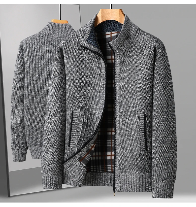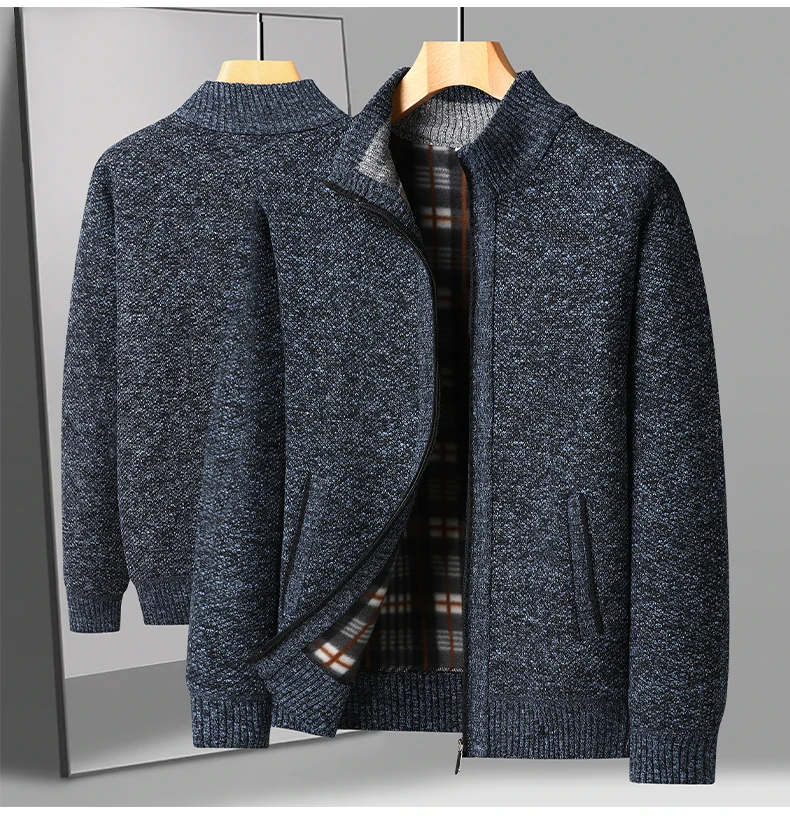 Men's Knitted Cardigan Jacket Autumn Winter Plush Sweater Men's.