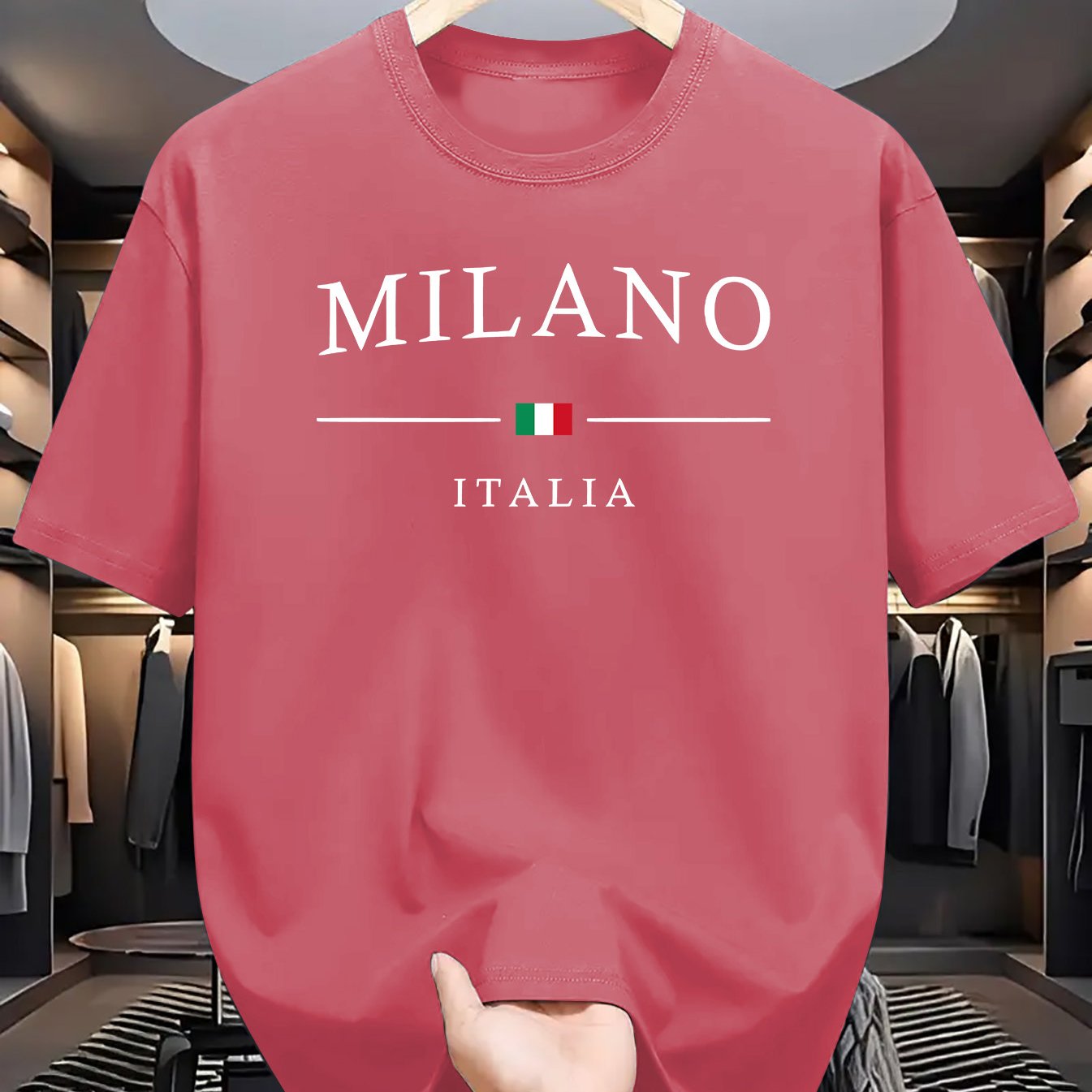 Men's Letter MILANO ITALIA Print Short Sleeve T-Shirts,