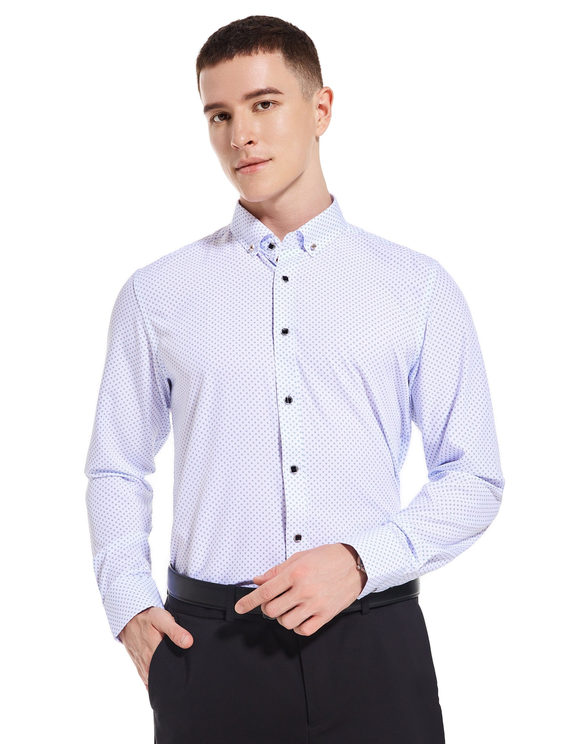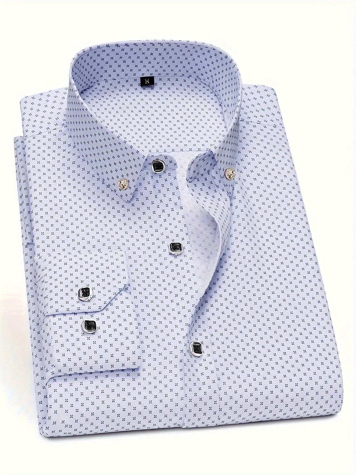 Men's Little Flowers Pattern Allover Print Lapel Collar Design Dress Shirts,