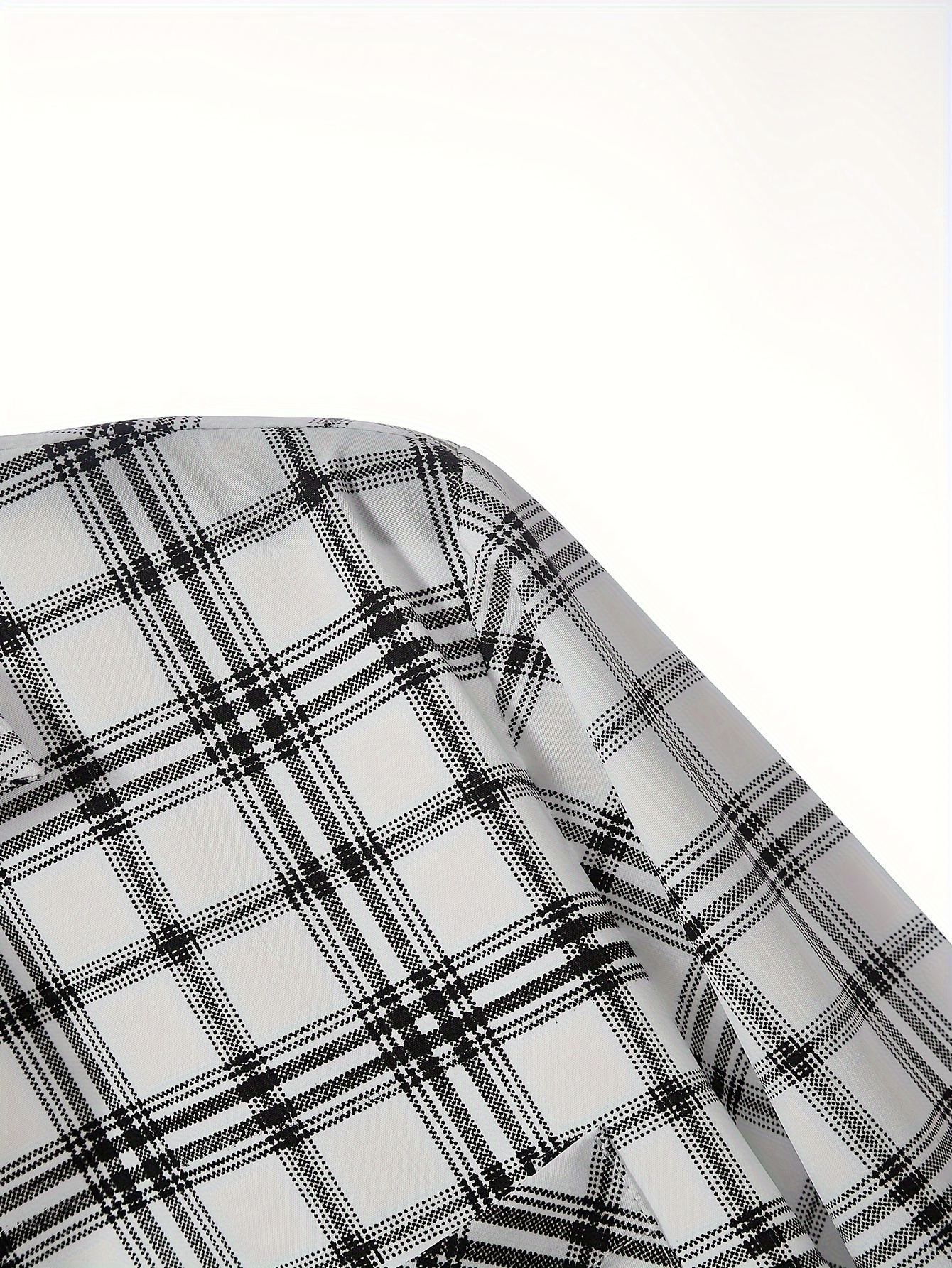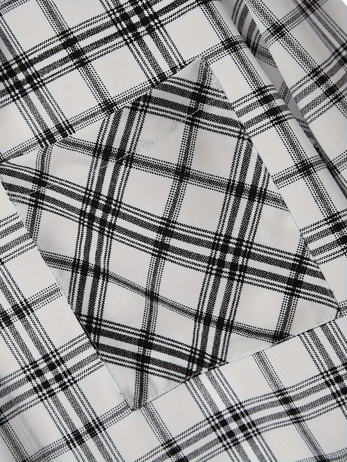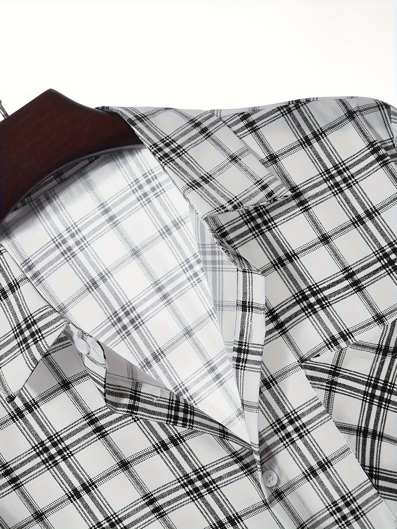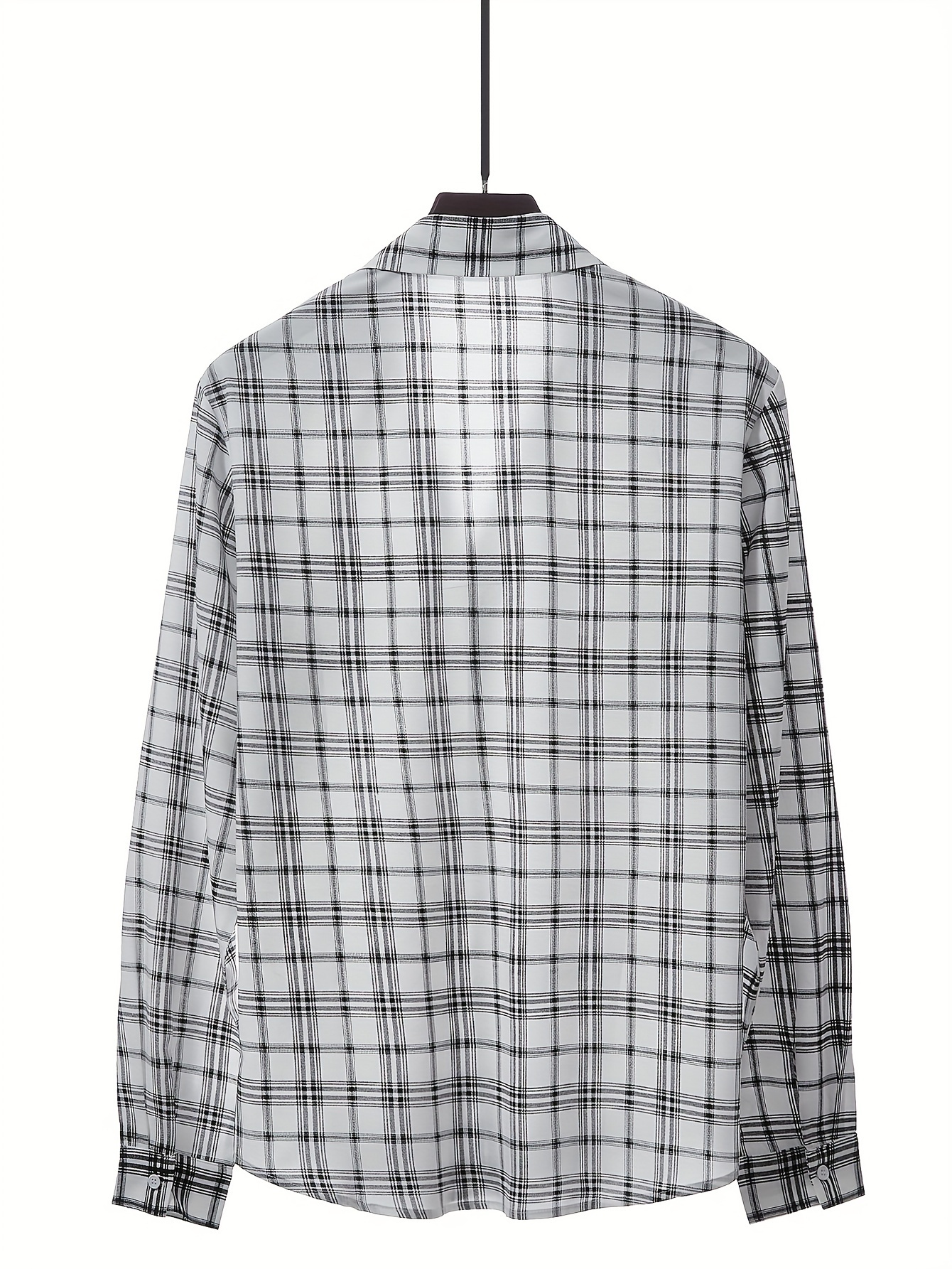 Men's Plaid Pattern Print Lapel Collar Dress Shirts With Chest Pocket,