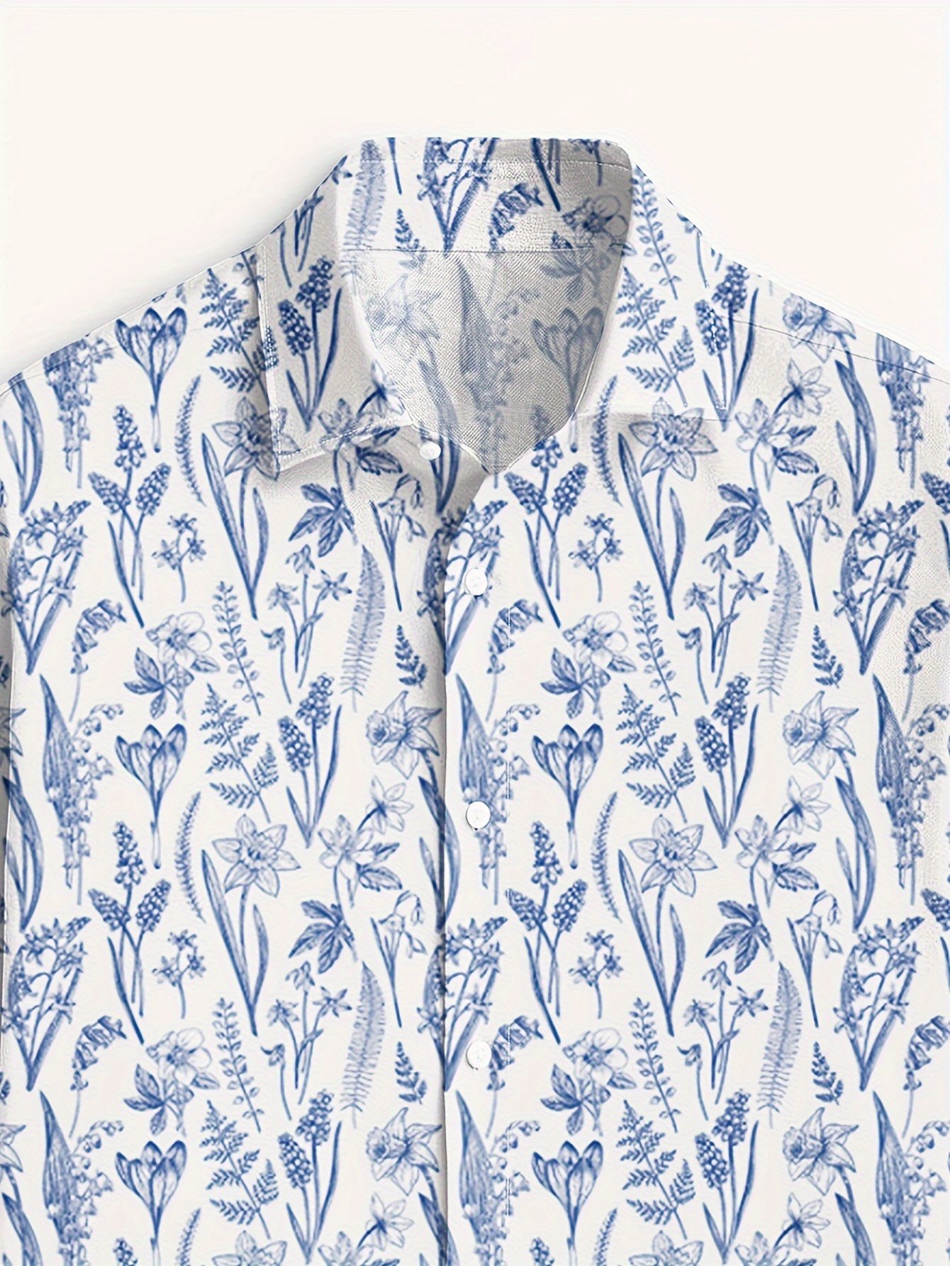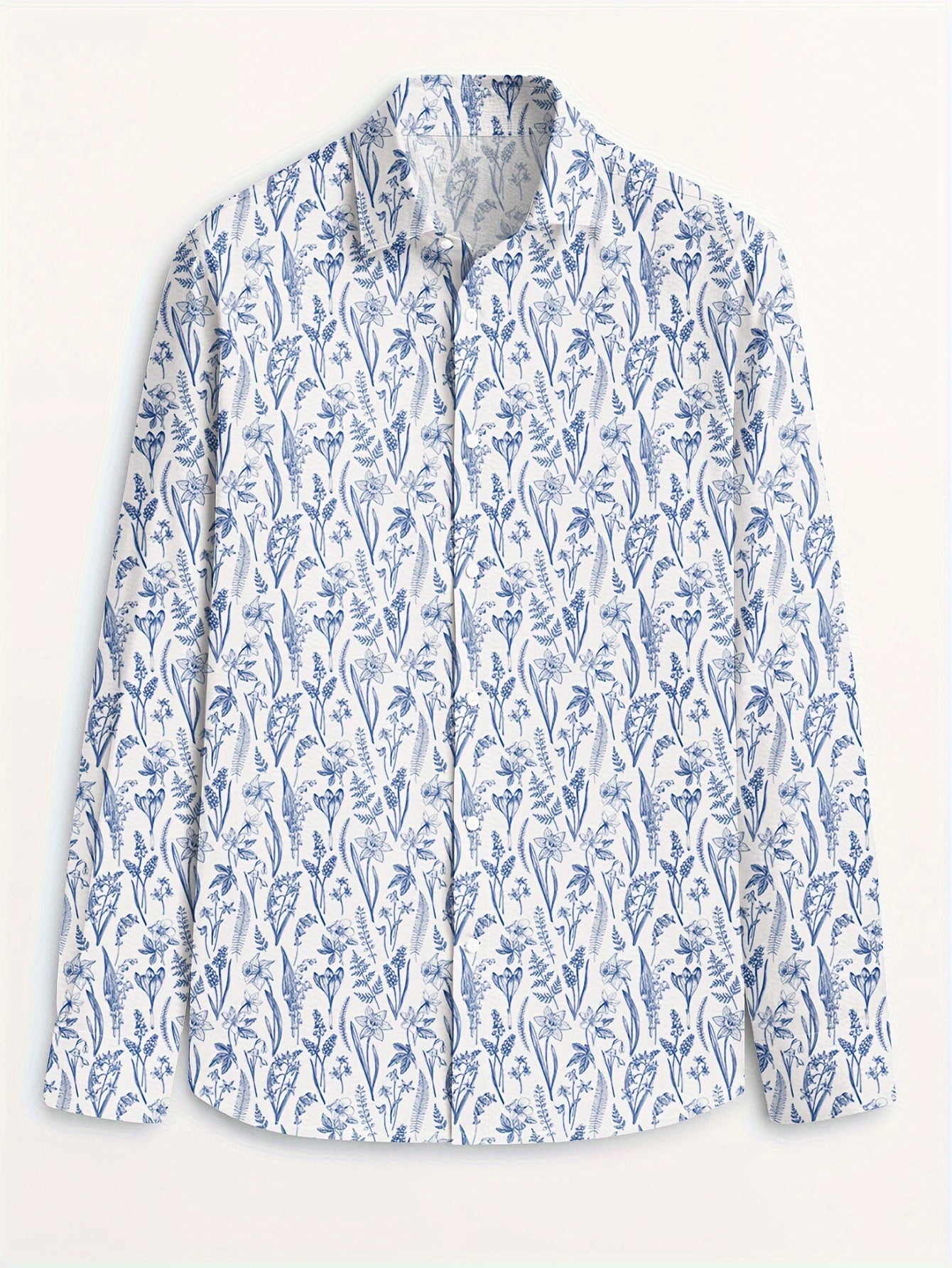 Men's Plants Pattern Allover Print Lapel Collar Design Dress Shirts,