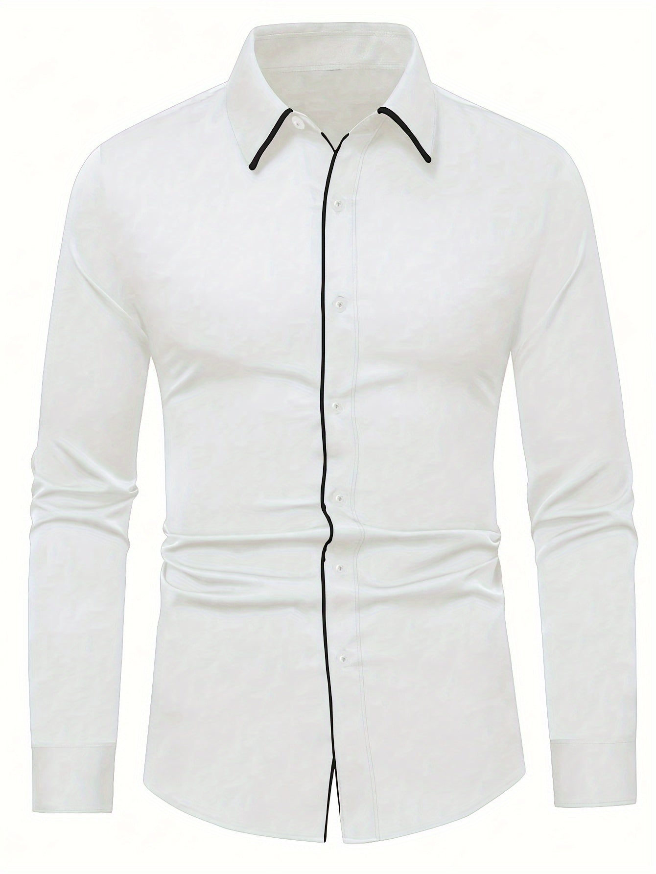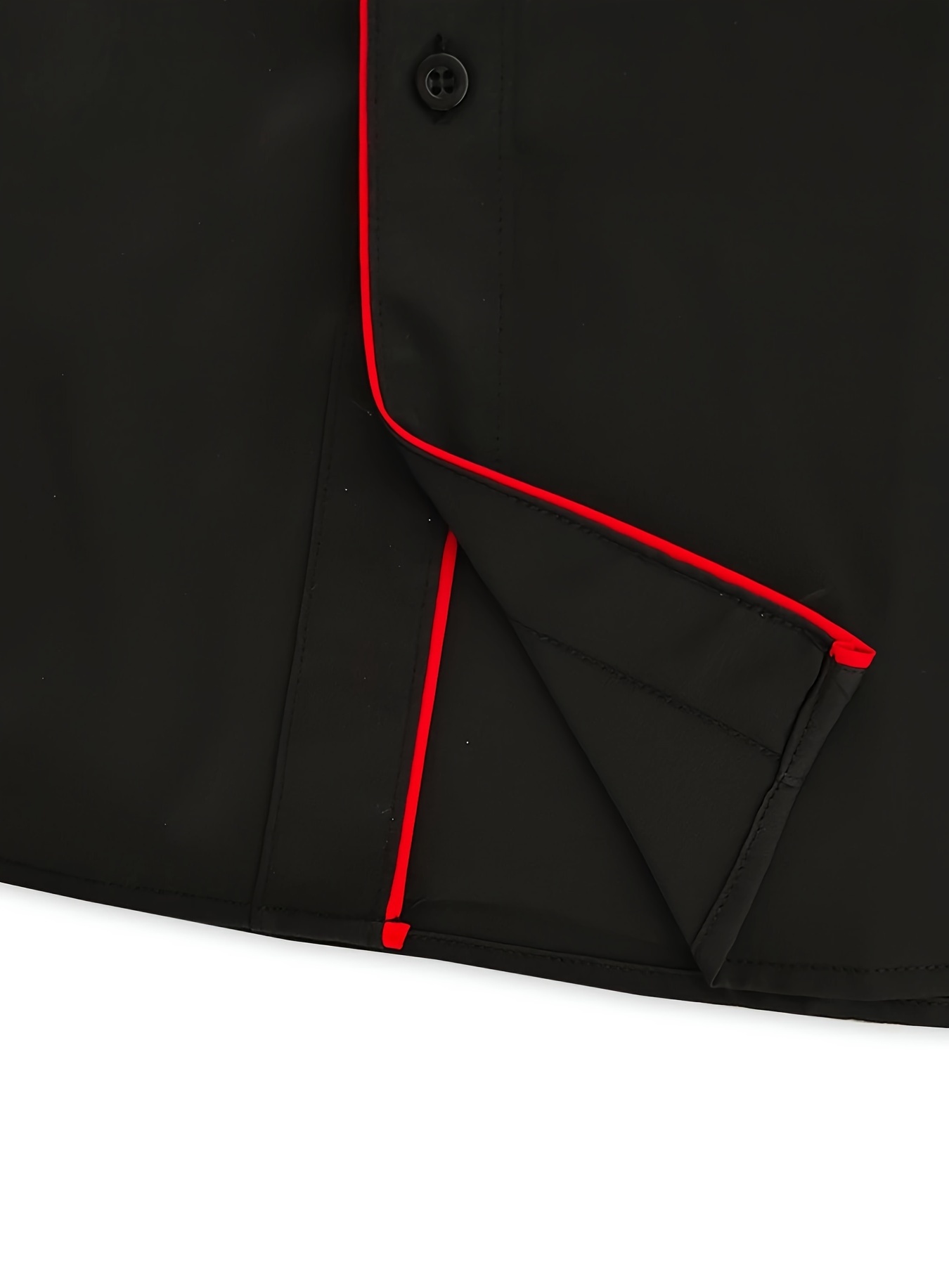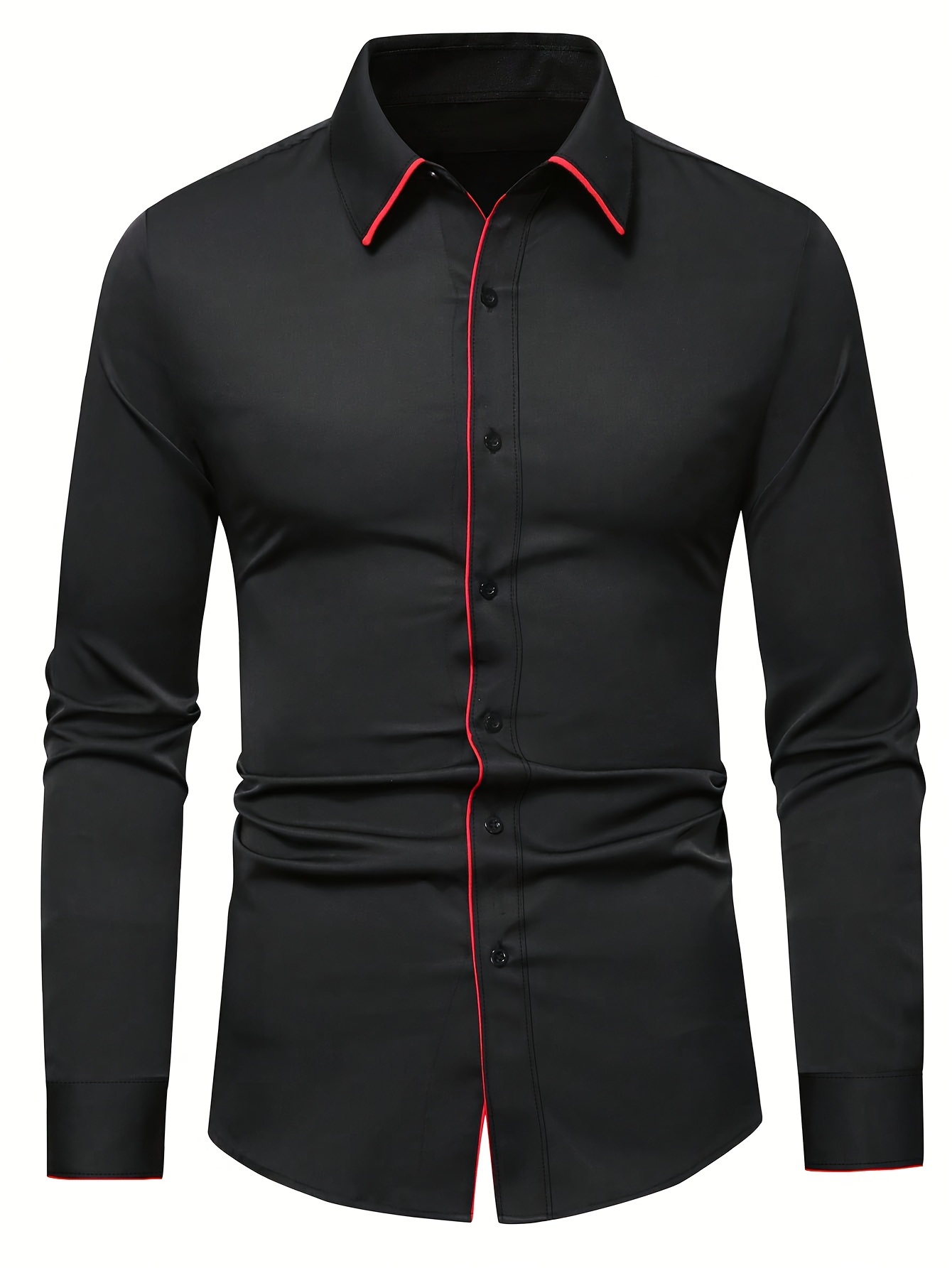 Men's Red Trim Design Lapel Collar Design Dress Shirts,