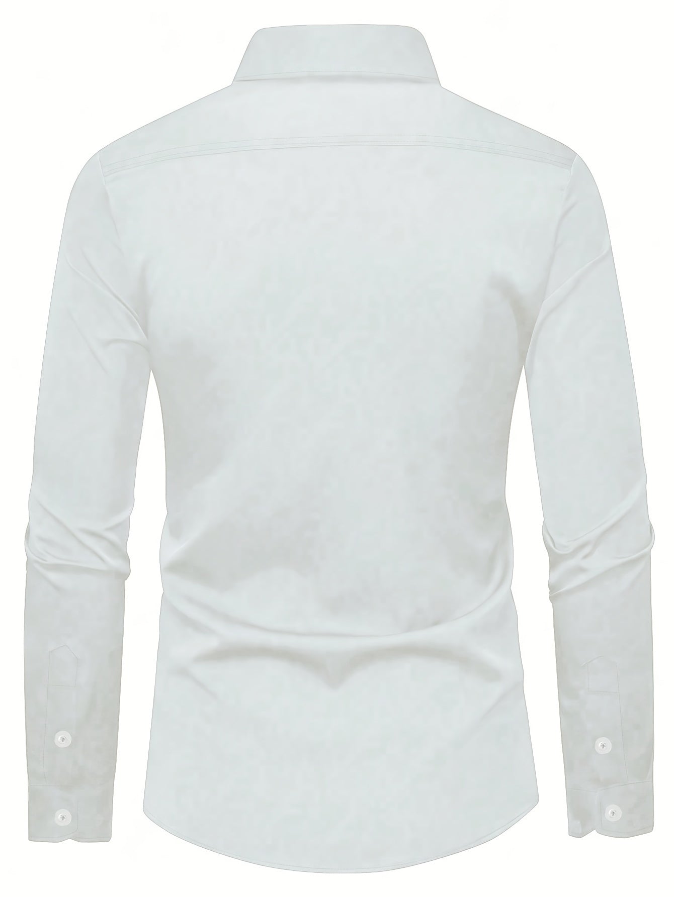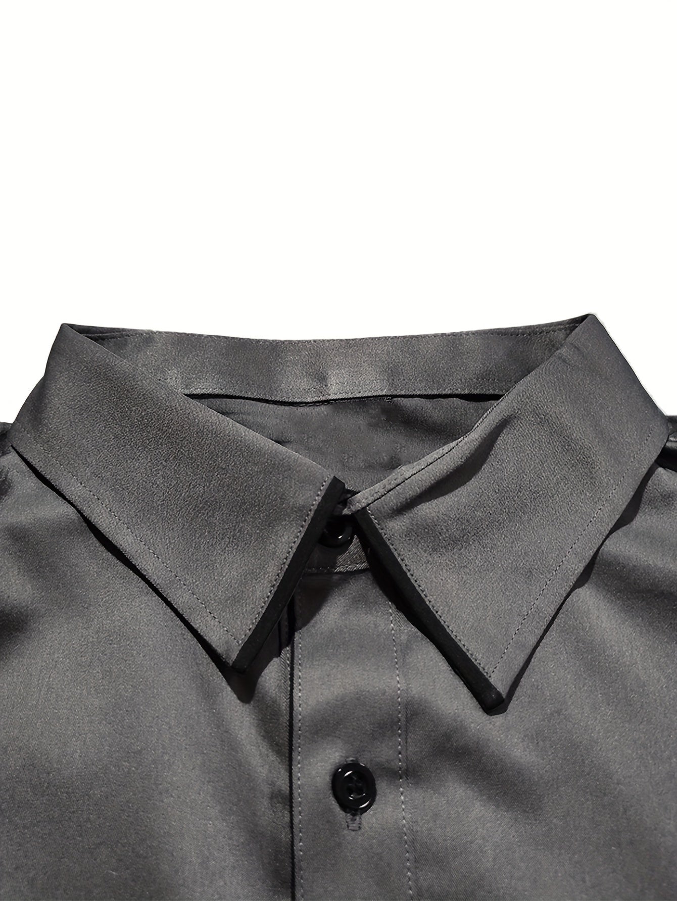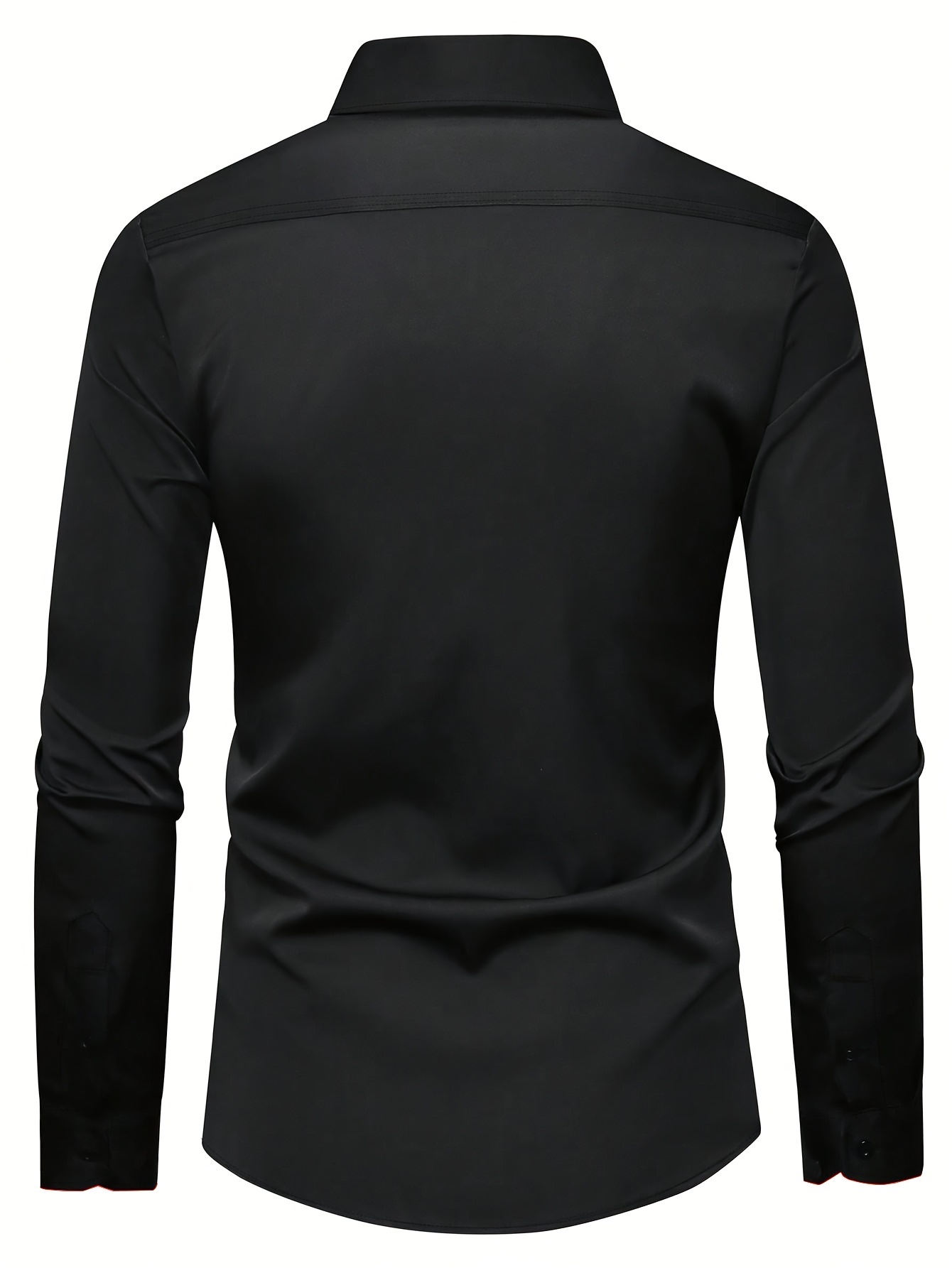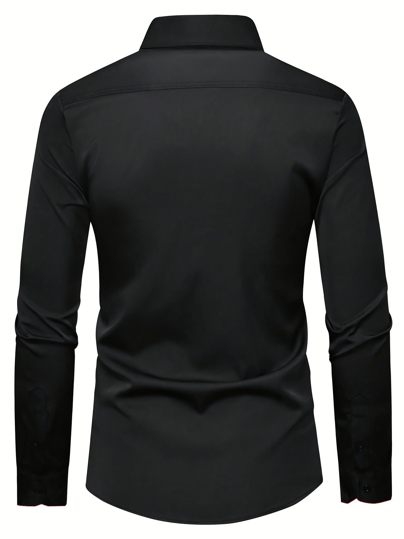 Men's Red Trim Design Lapel Collar Design Dress Shirts,