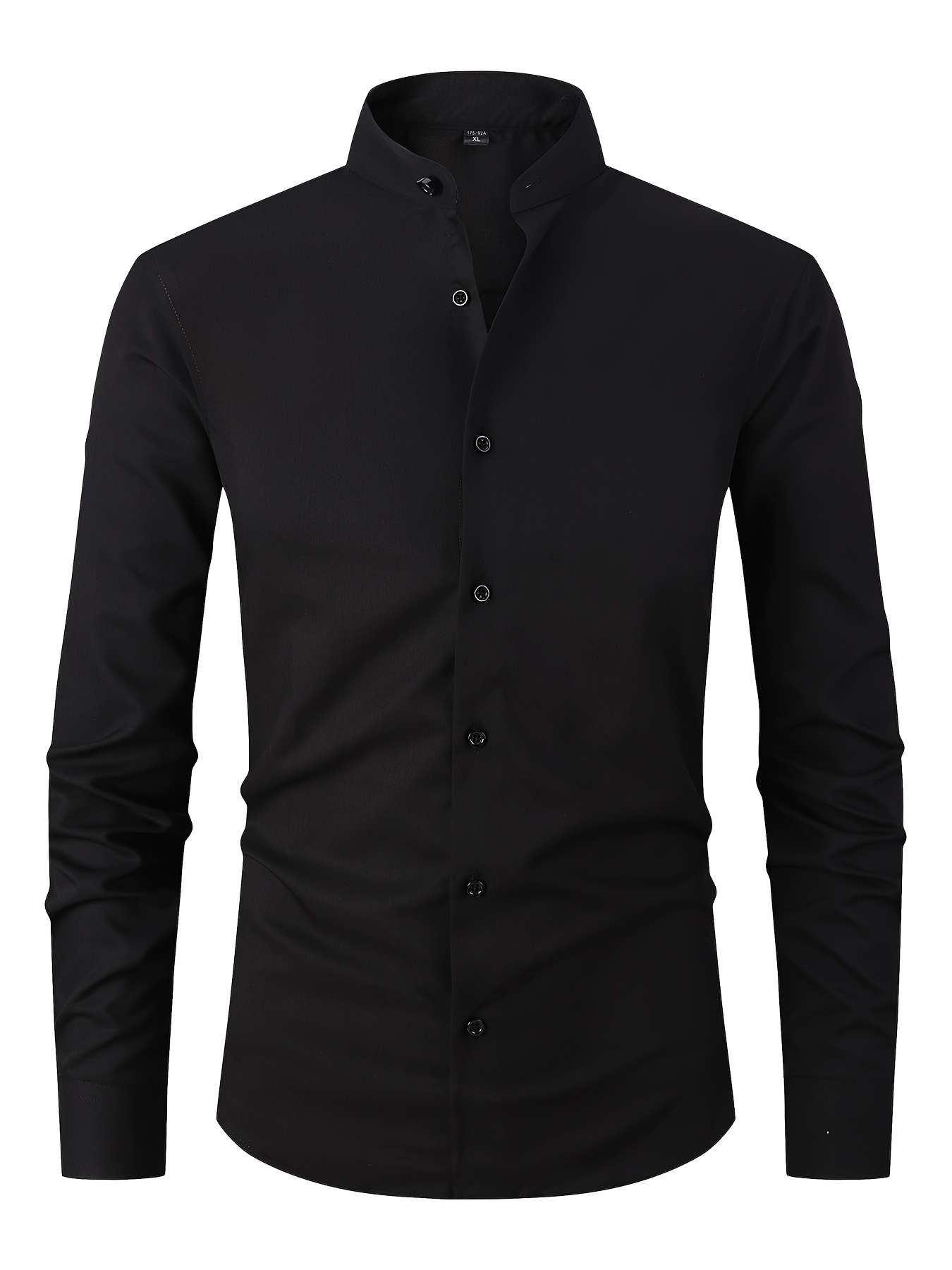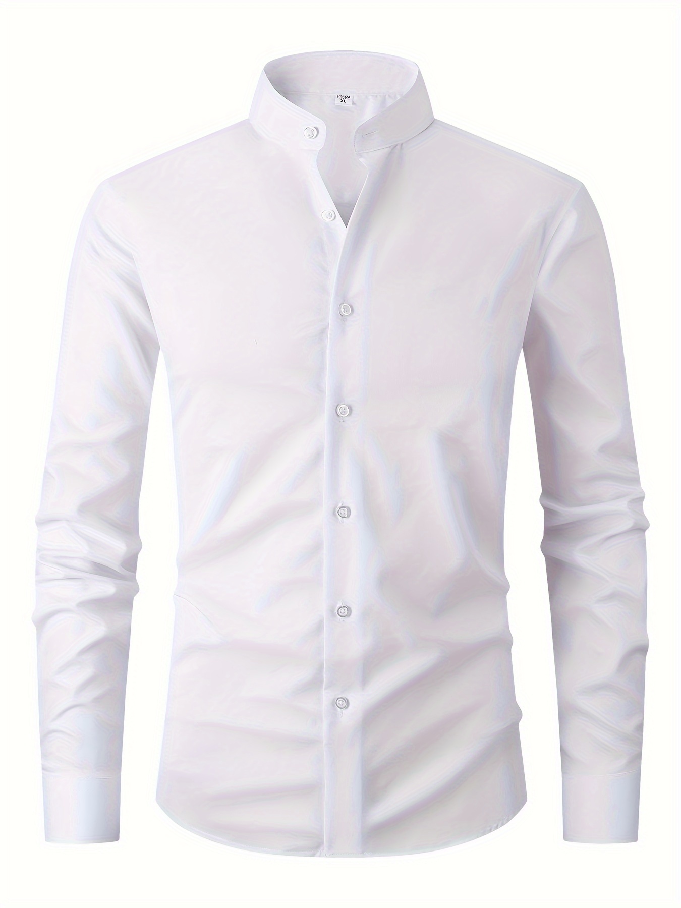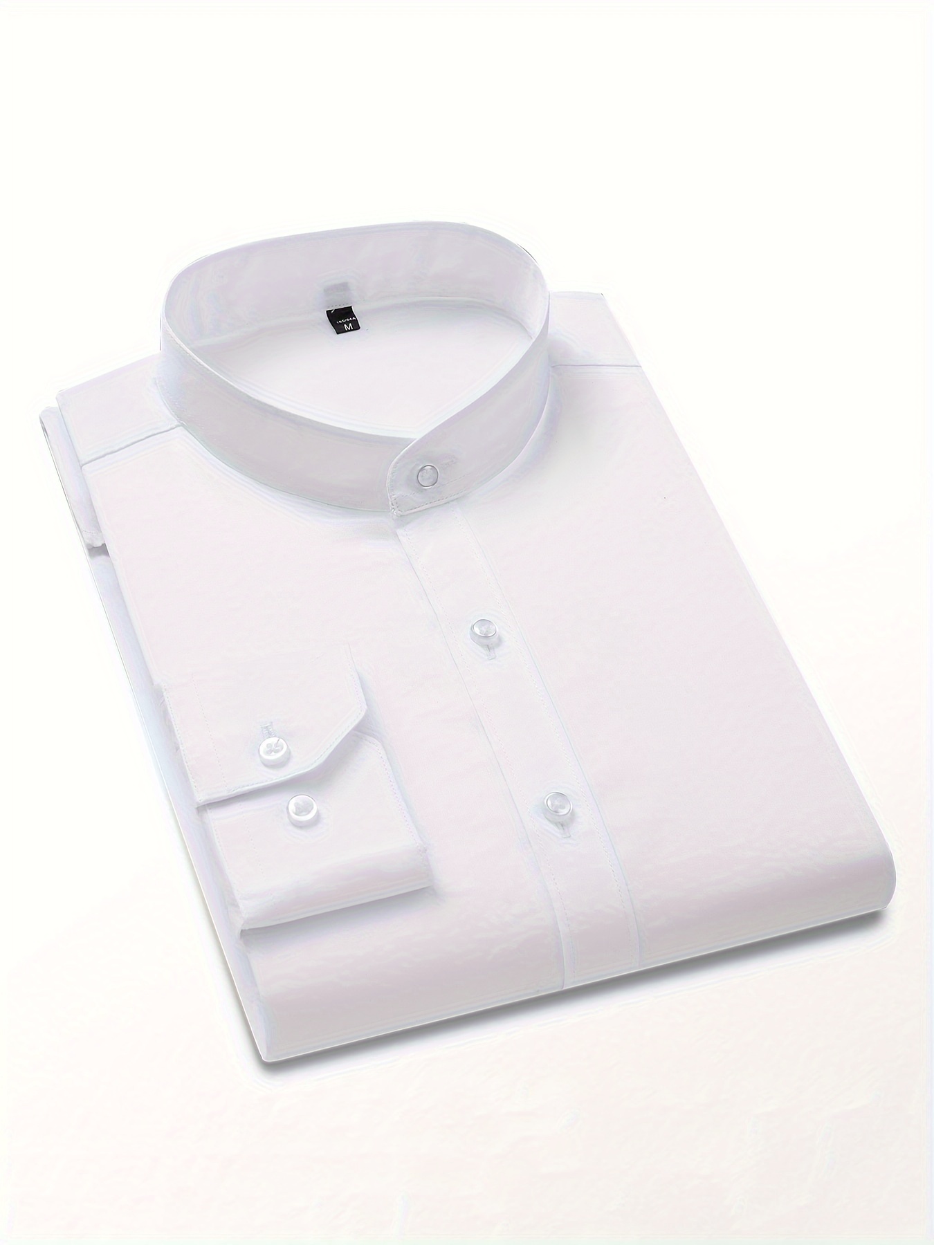 Men's Solid Color Mandarin Collar Design Dress Shirts,
