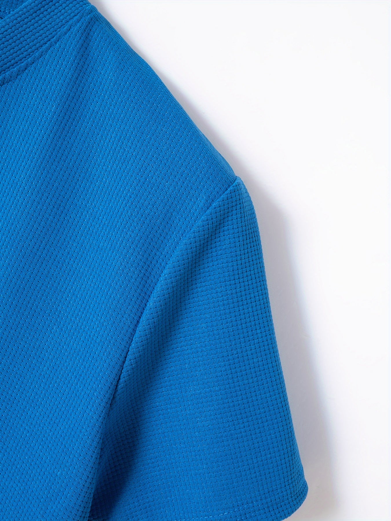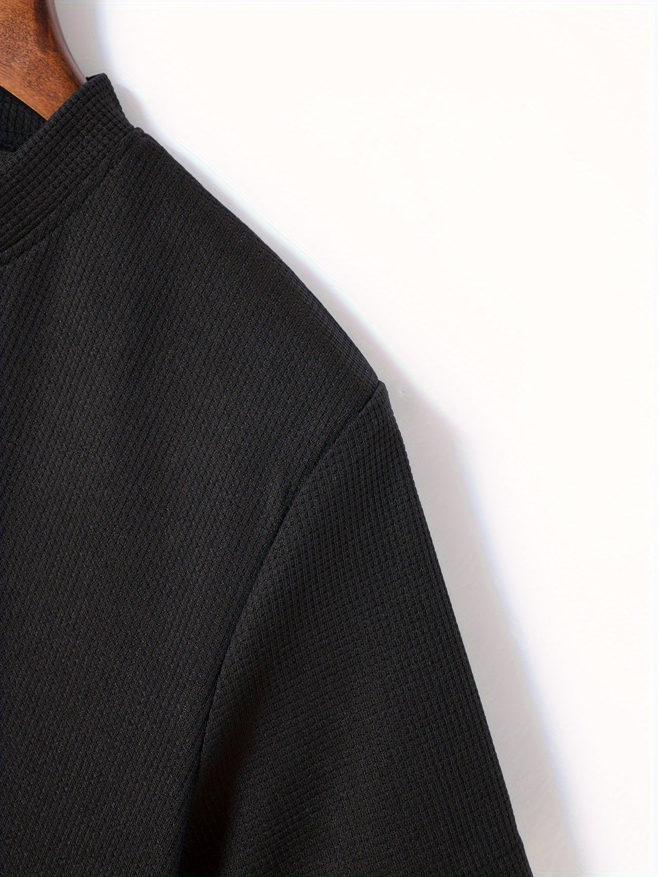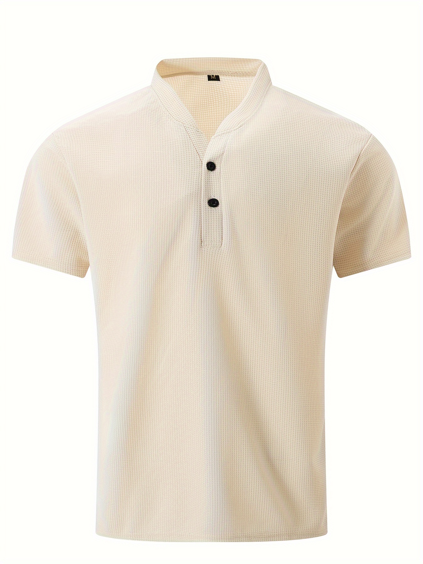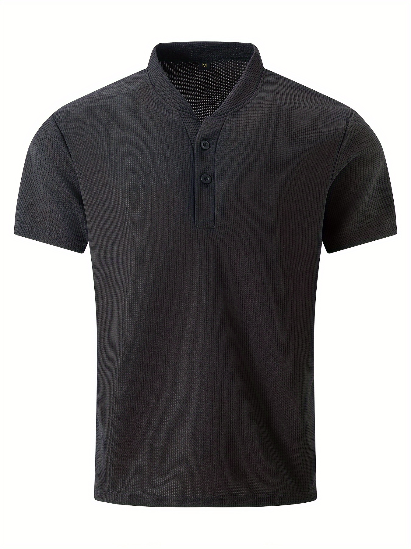 Men's Solid Waffle Stand Collar Short Sleeve Golf Shirts,