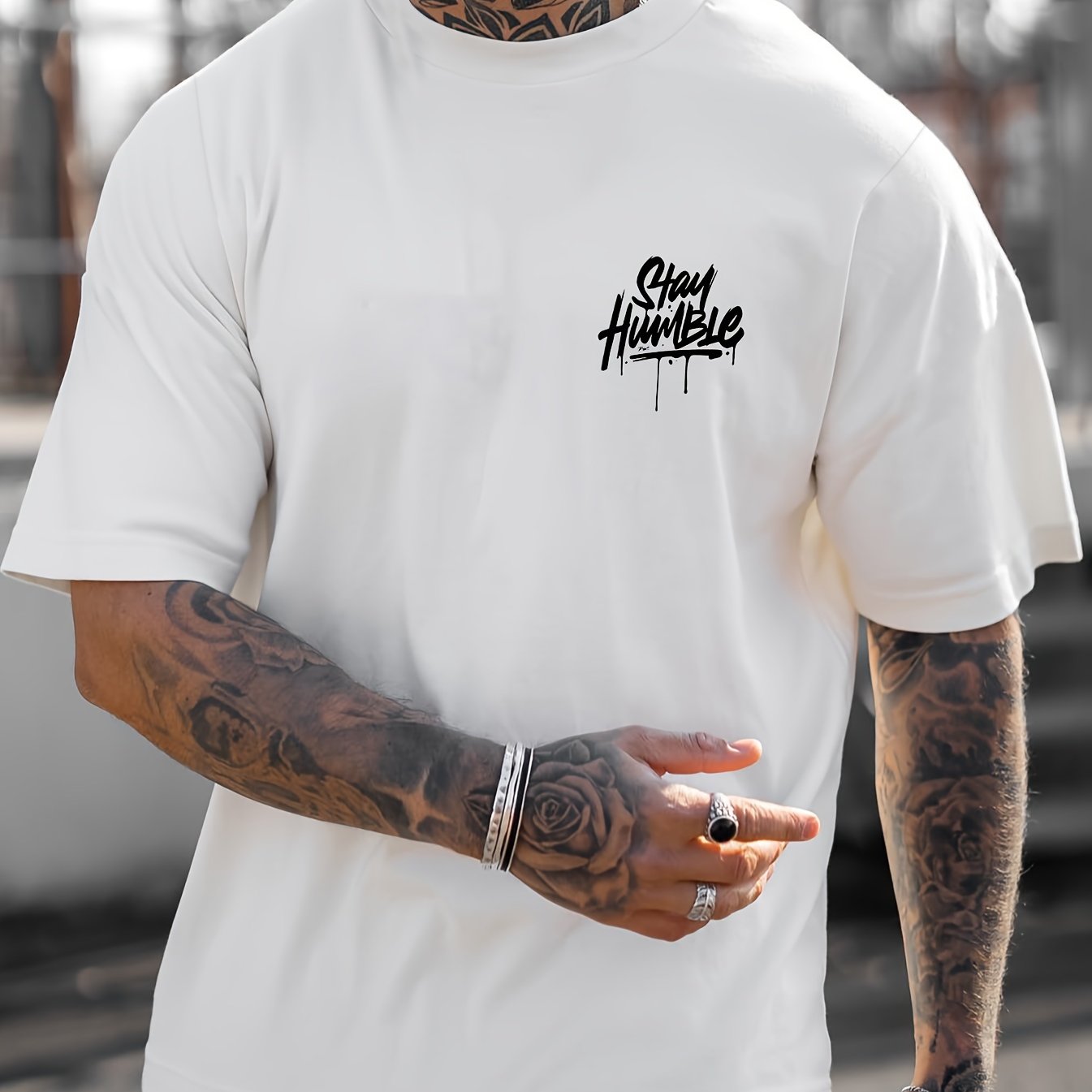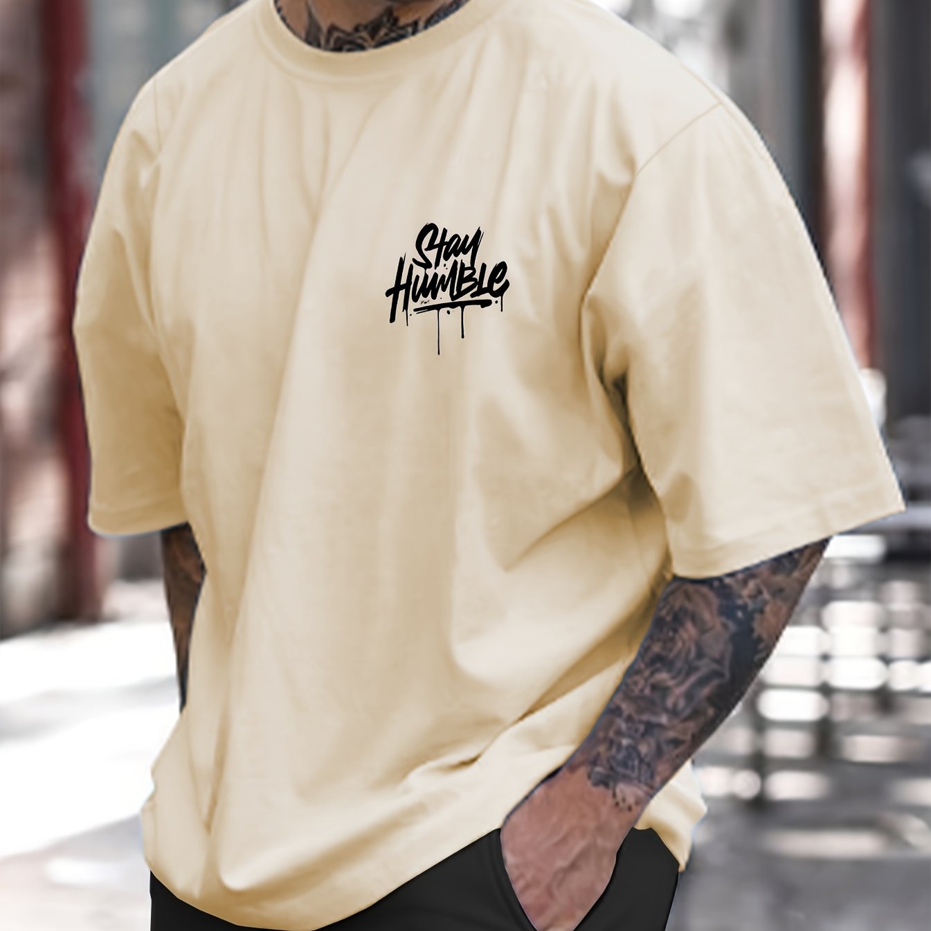 Men's Stay Humble Letter Print Short Sleeve T-Shirts,