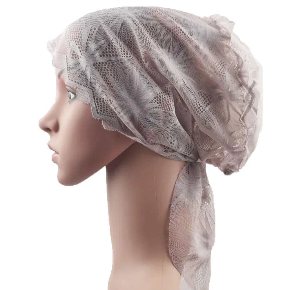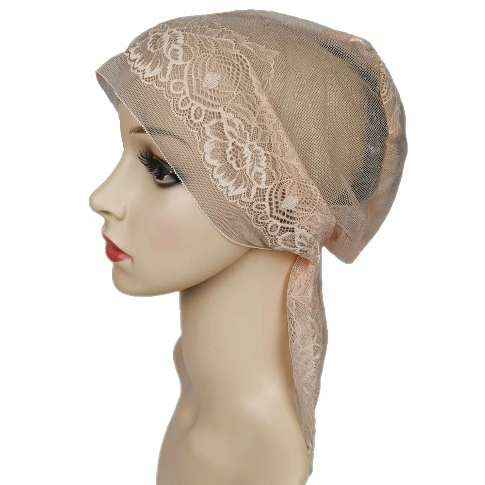 Muslim Women Head Scarf Lace Flower Underscarf Elastic Hijab  Cover Headwrap Chemo Cap Islam Headband Bonnet Turbante Mujer