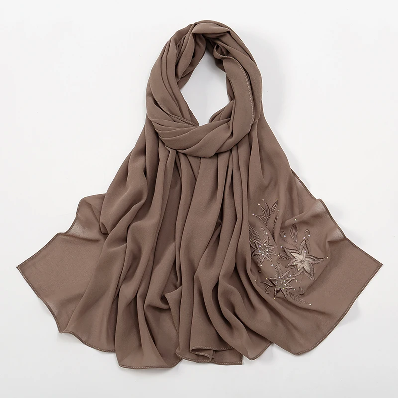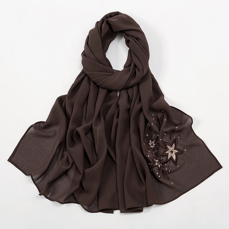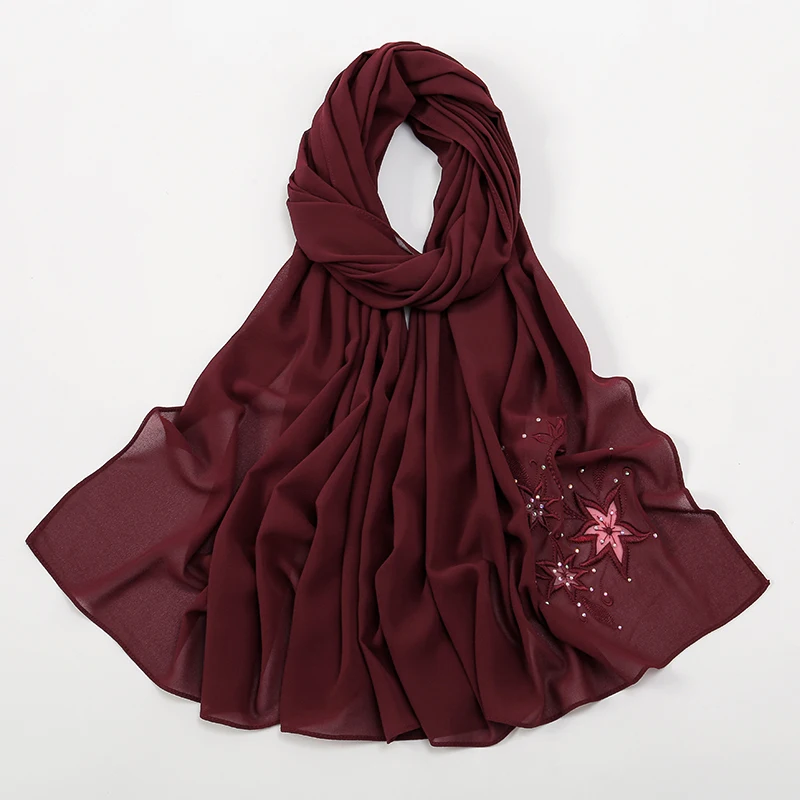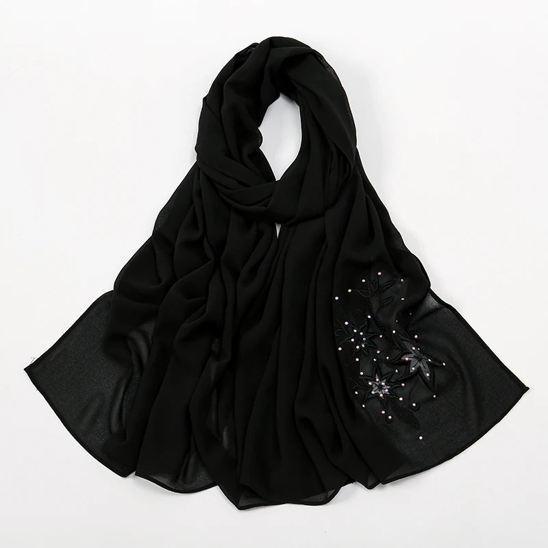 New Embroidery Chiffon Hijab Malaysia Women Islamic Shawls Muslim Hijabs .