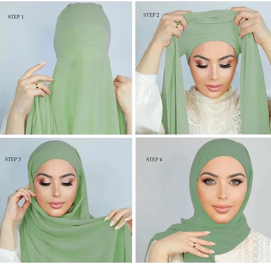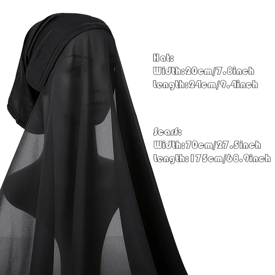 New Instant Chiffon Hijab Scarf With Undercap Solid Color .