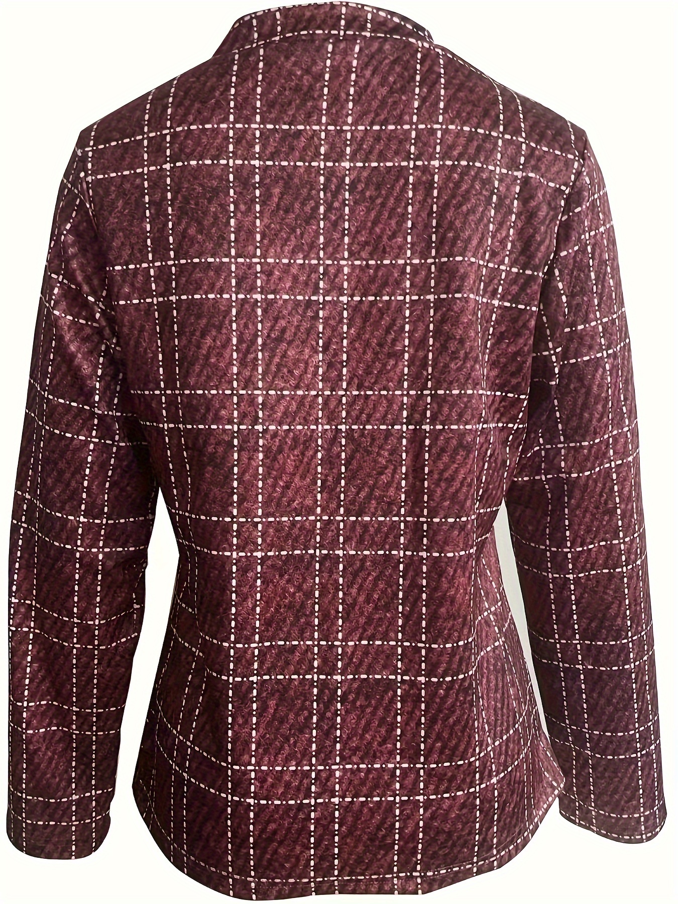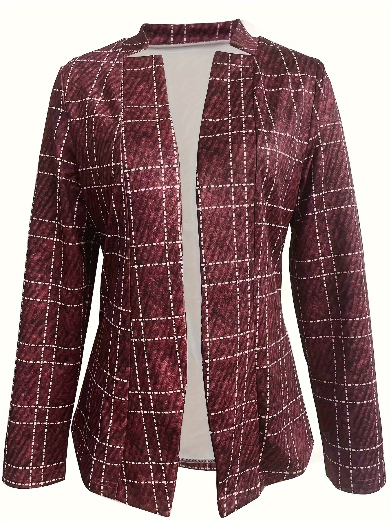 Plaid Print Open Front Blazer, Elegant Long Sleeve .