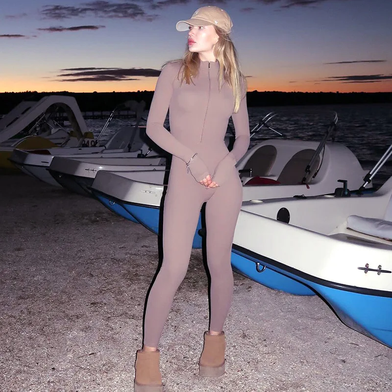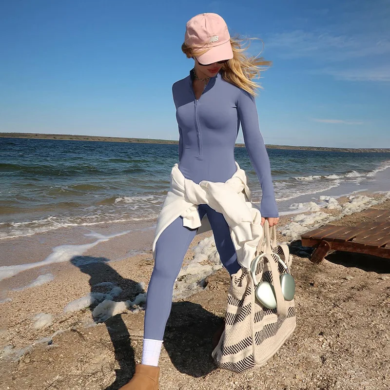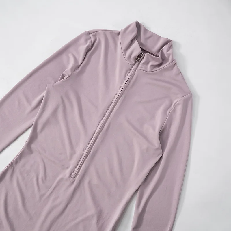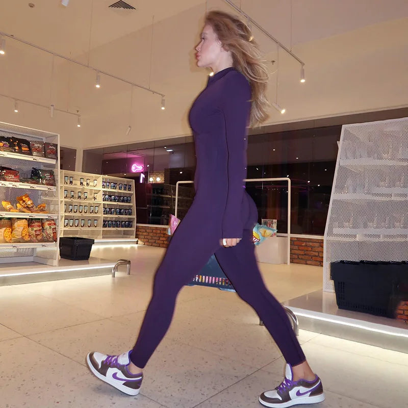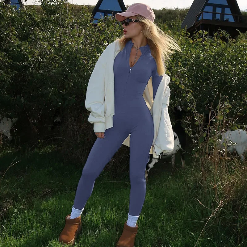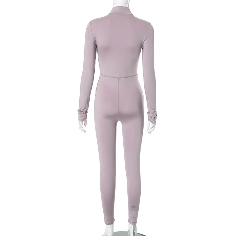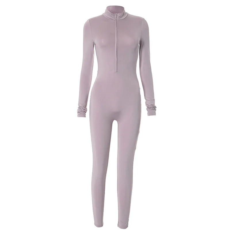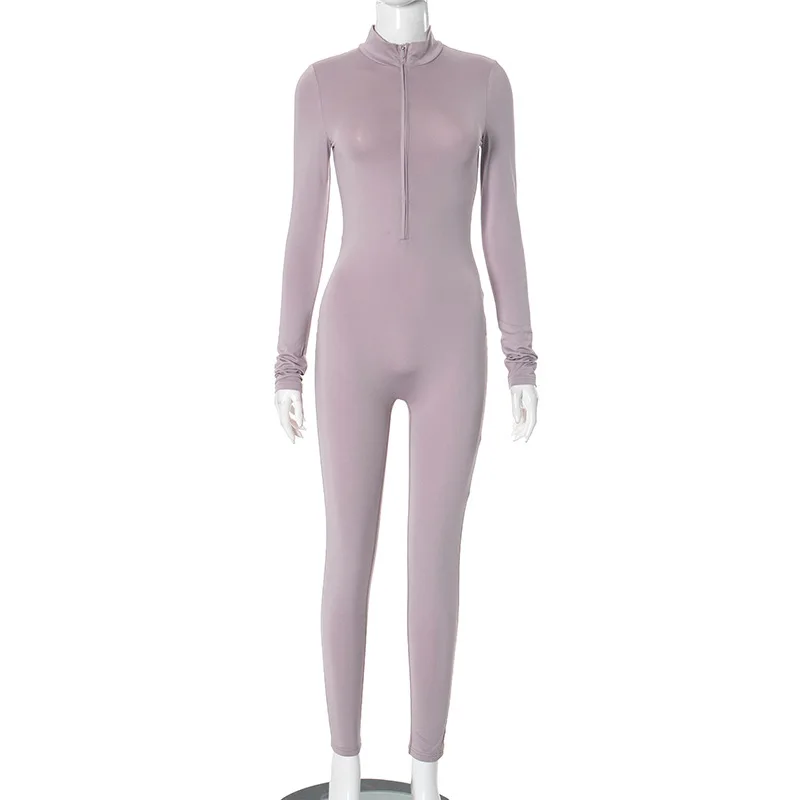 Shestyle Solid Women 2025 Fitness Bodycon Jumpsuit Zipper Fly Mock Neck Work Out Clothes Hipster Violet Sexy Stretchy Stylish