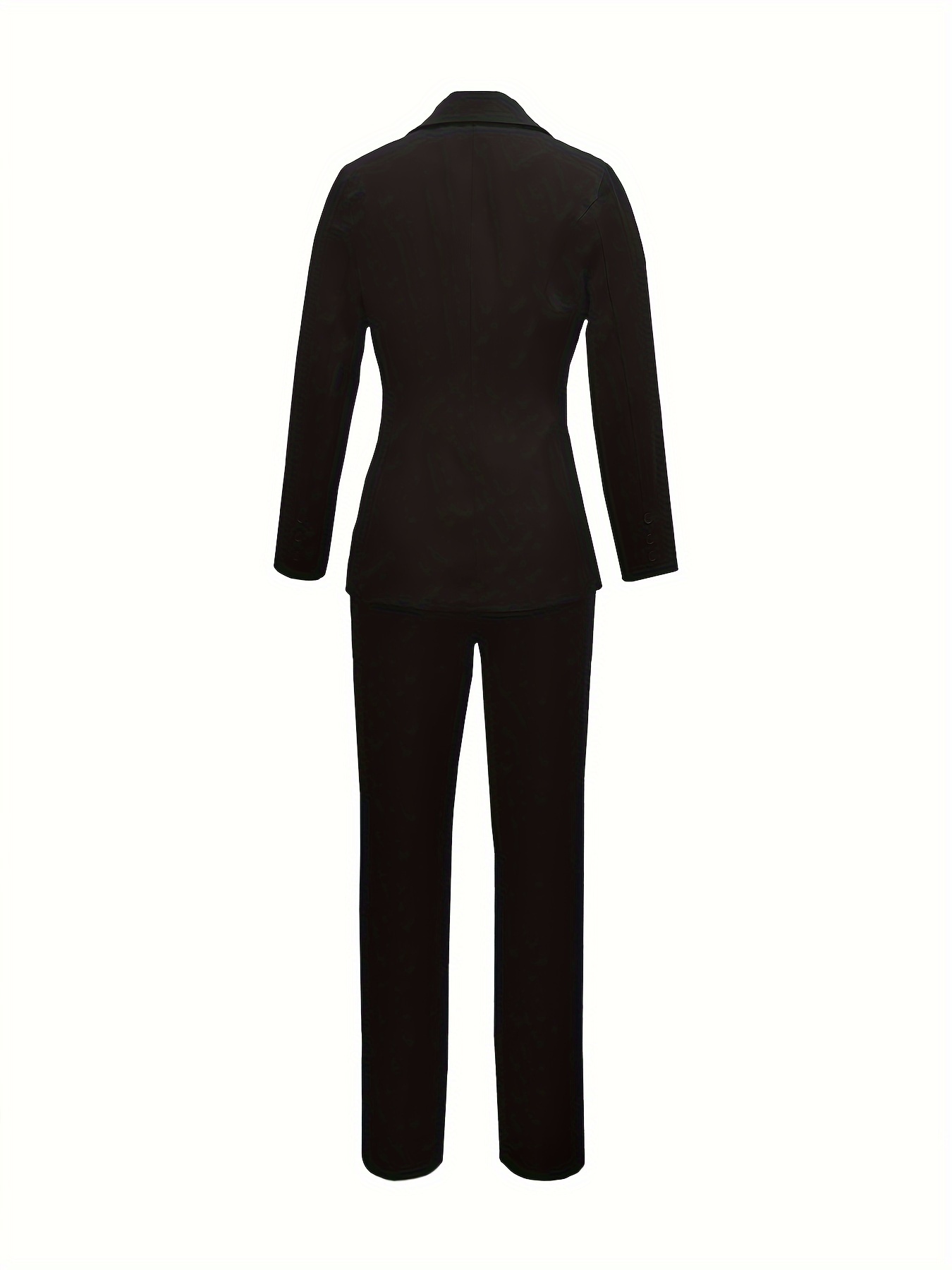 Solid Color Elegant Pantsuits, Long Sleeve Lapel Collar Button Blazer.