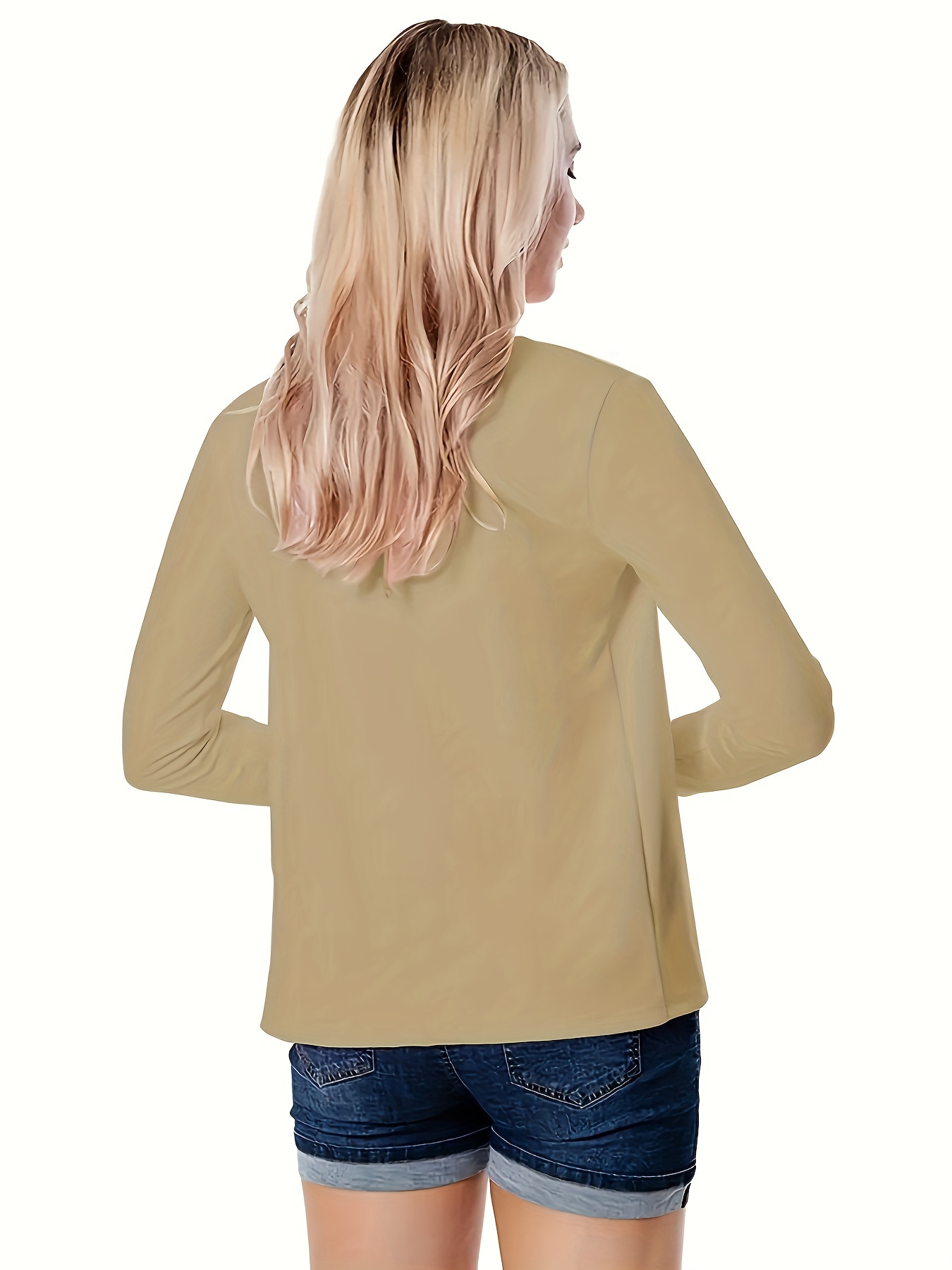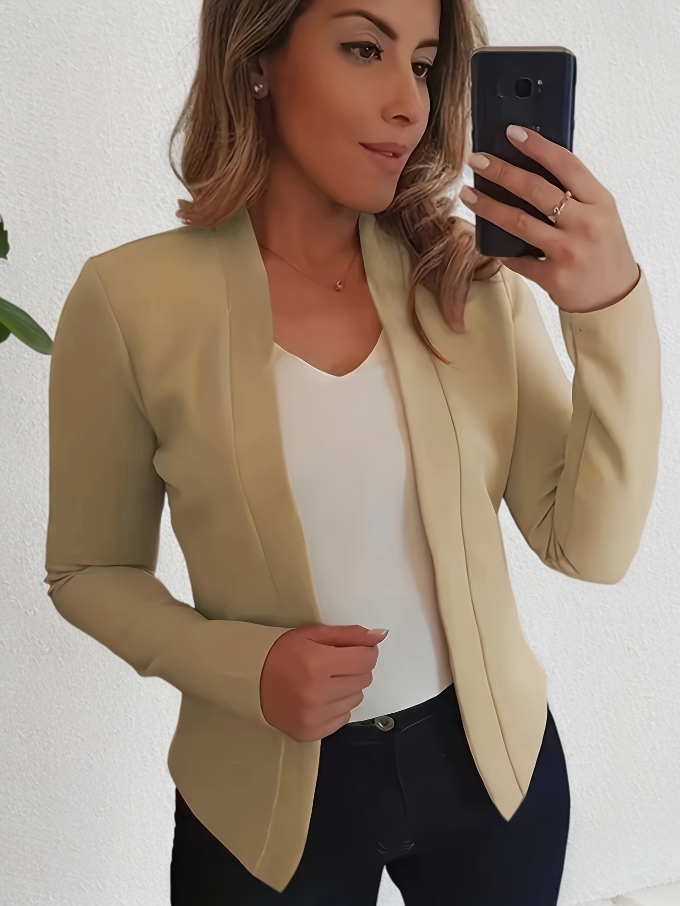Solid Lapel Blazer, Casual Long Sleeve Blazer For Office & Work,