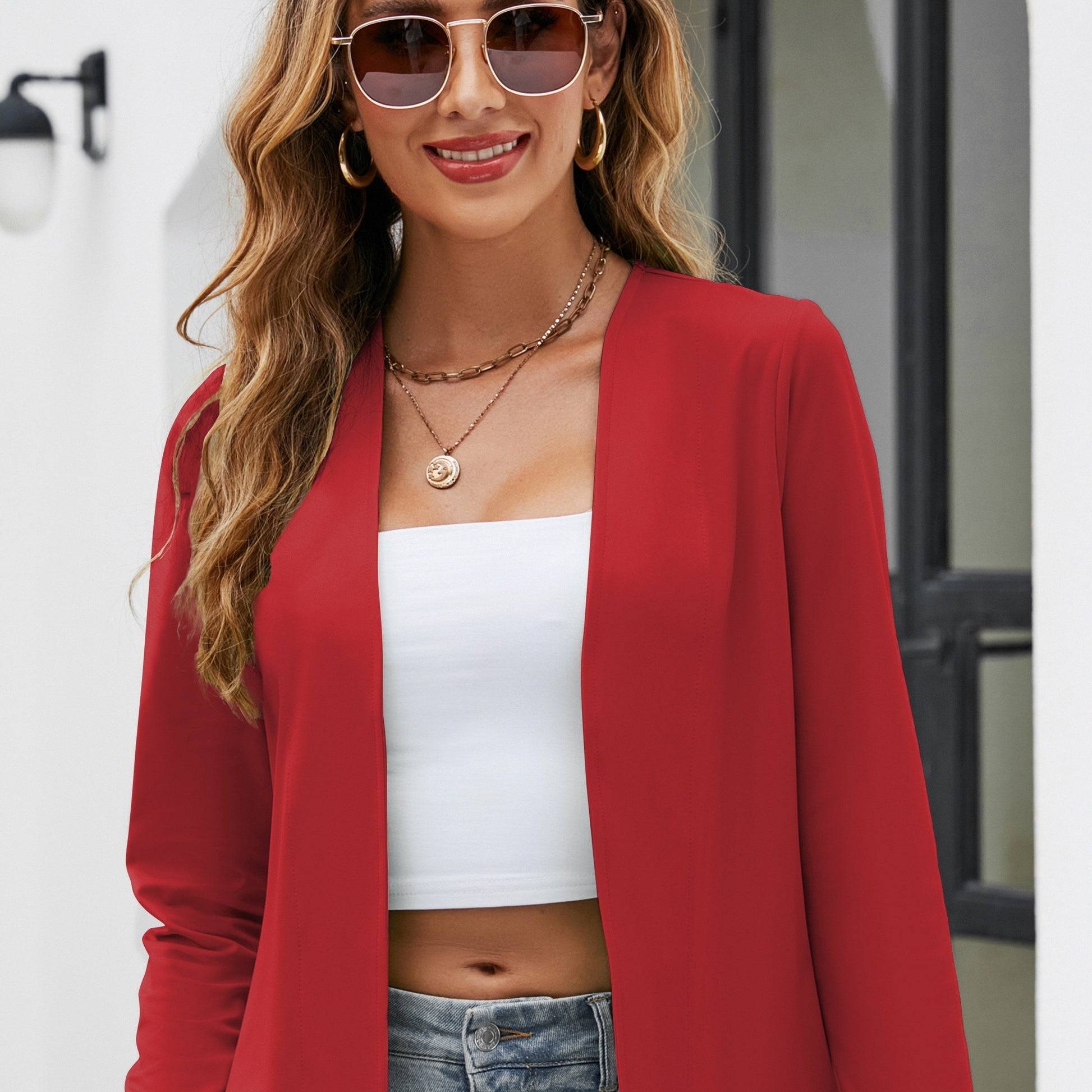 Solid Open Front Blazer, Casual Long Sleeve Work Office Outerwear,
