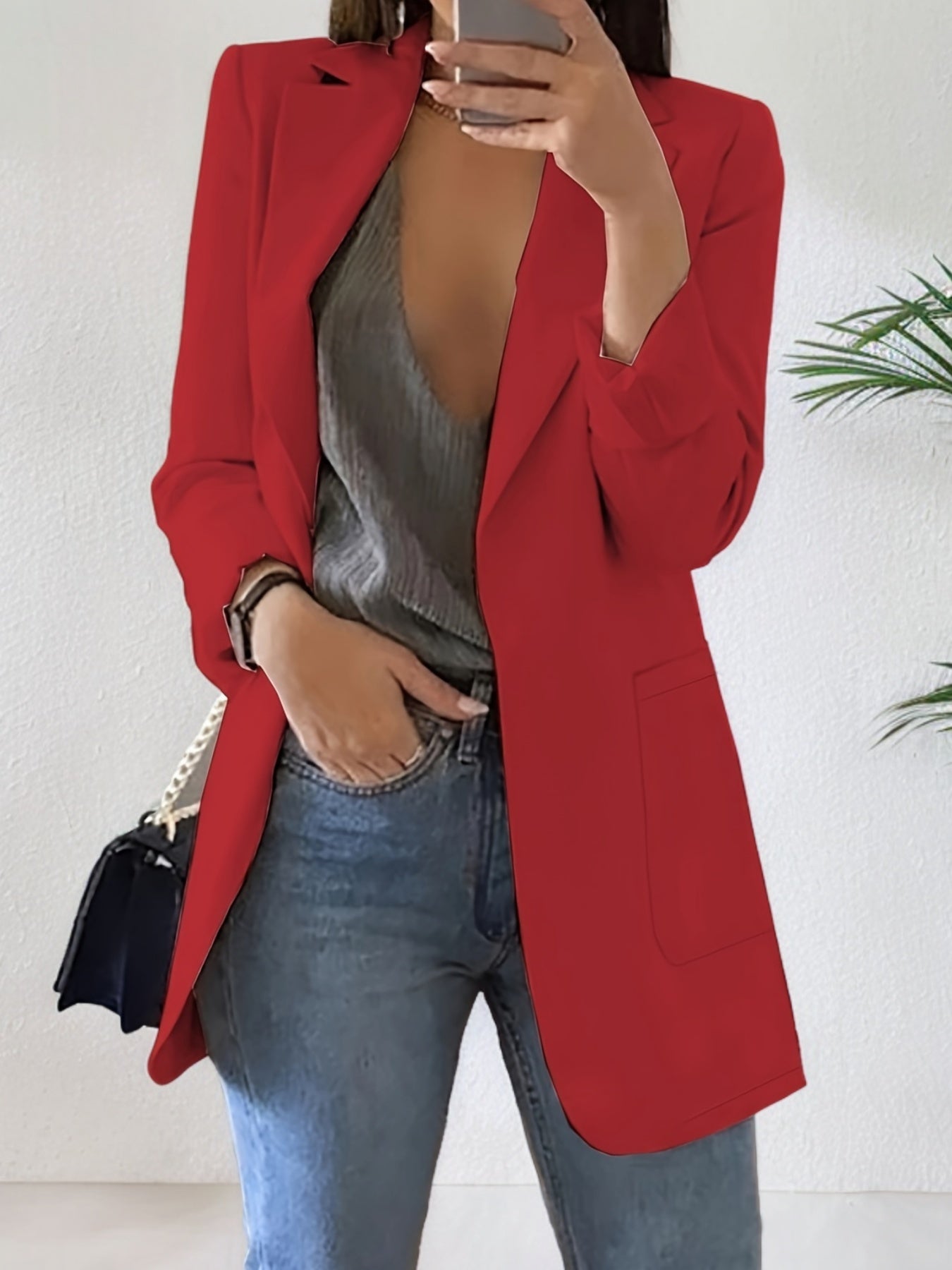 Solid Open Front Blazer, Elegant Lapel Long Sleeve Blazer.