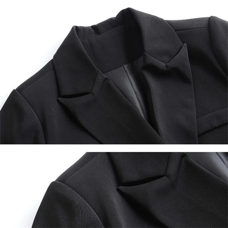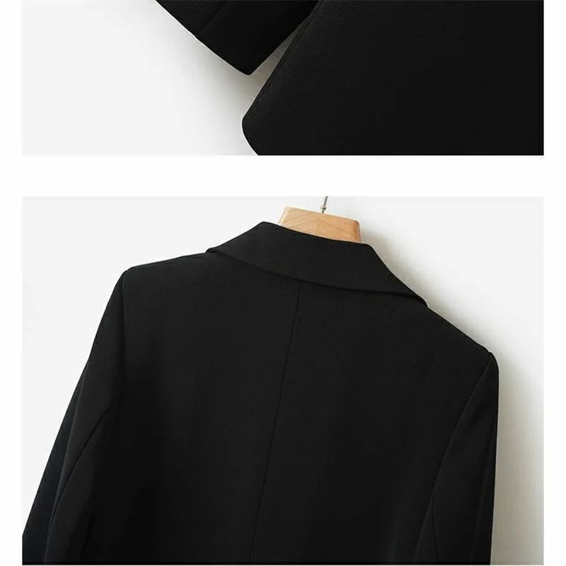 Spring Autumn Women British Style Leisure Solid Color Black Blazer.