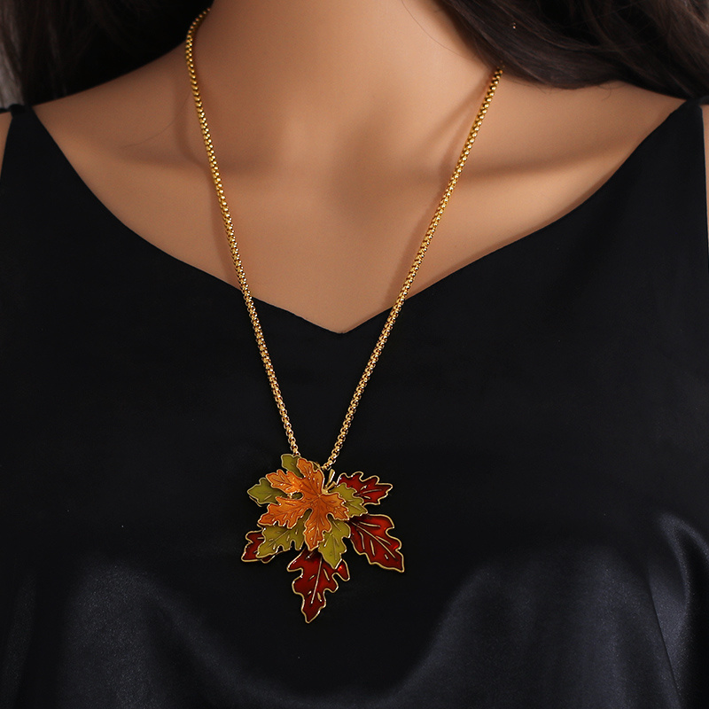 An Oiled Maple Leaf Necklace For Ladies With Personalized Fashion Alloy Leaf Sweater Chain