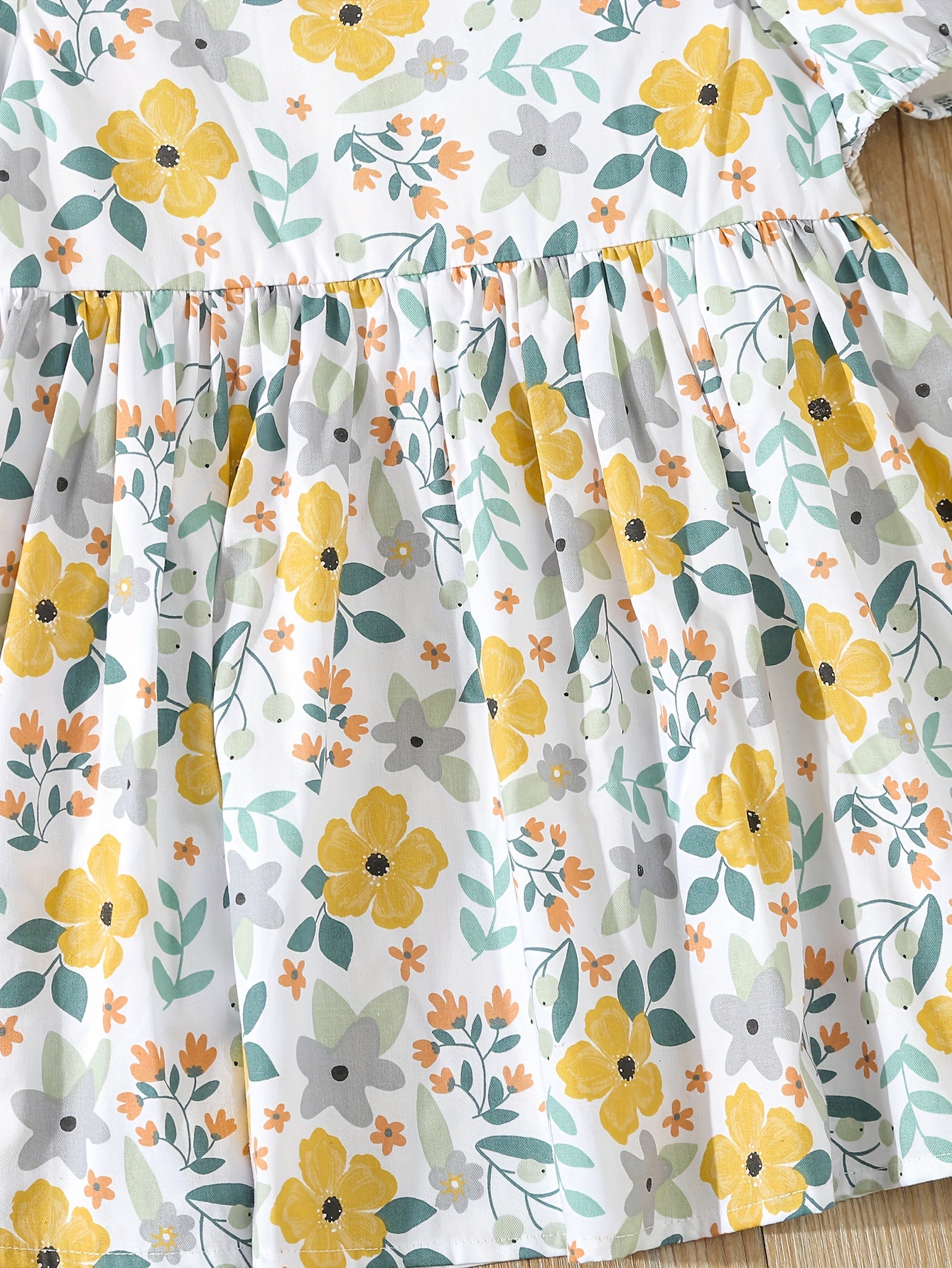 Summer Outfit Set For Kids, Includes Cute Floral Print Dress.
