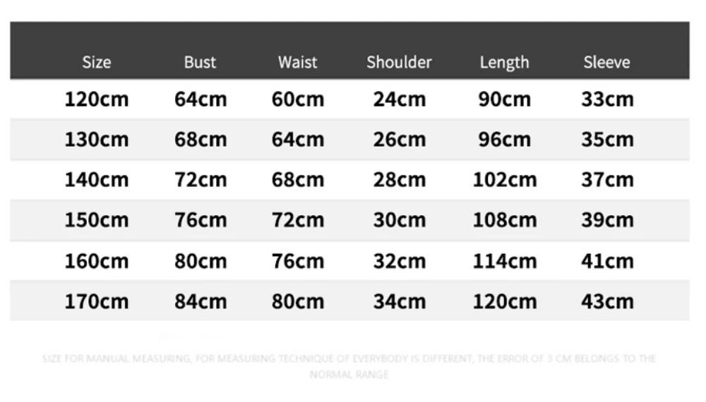 size_info: {"sizeInfoList":[{"length":{"cm":"64","inch":"25.20"},"size":"120 (5 Years)","vid":-1},{"length":{"cm":"68","inch":"26.77"},"size":"130 (6 Years)","vid":-2},{"length":{"cm":"72","inch":"28.35"},"size":"140 (7 Years)","vid":-3},{"length":{"cm":"76","inch":"29.92"},"size":"150 (9-10 Years)","vid":-4},{"length":{"cm":"80","inch":"31.50"},"size":"160 (11-12 Years)","vid":-5},{"length":{"cm":"84","inch":"33.07"},"size":"170 (13-14 Years)","vid":-6}]}