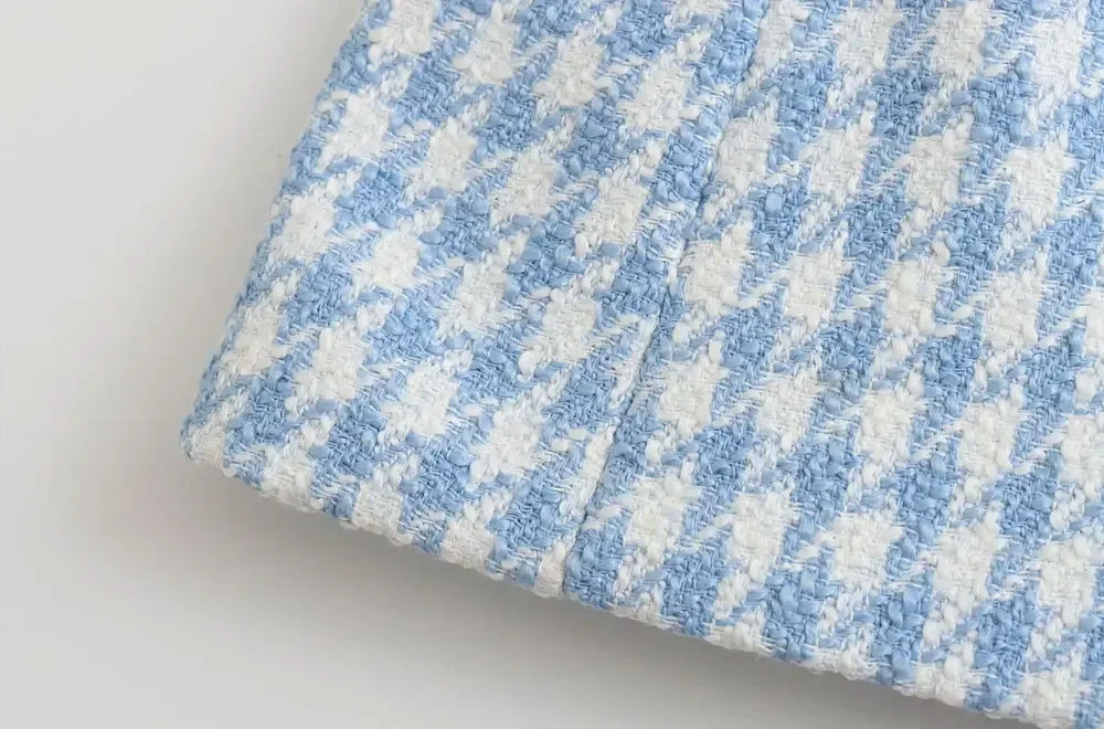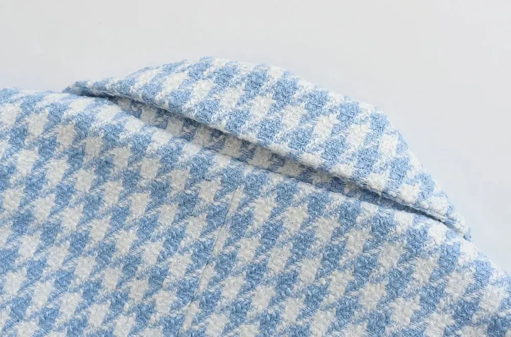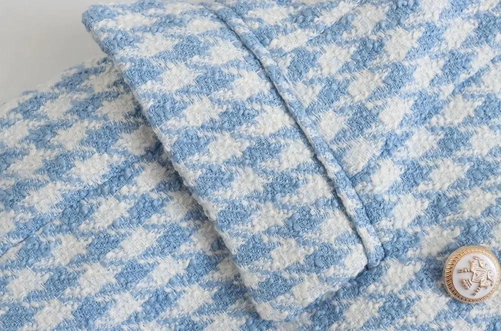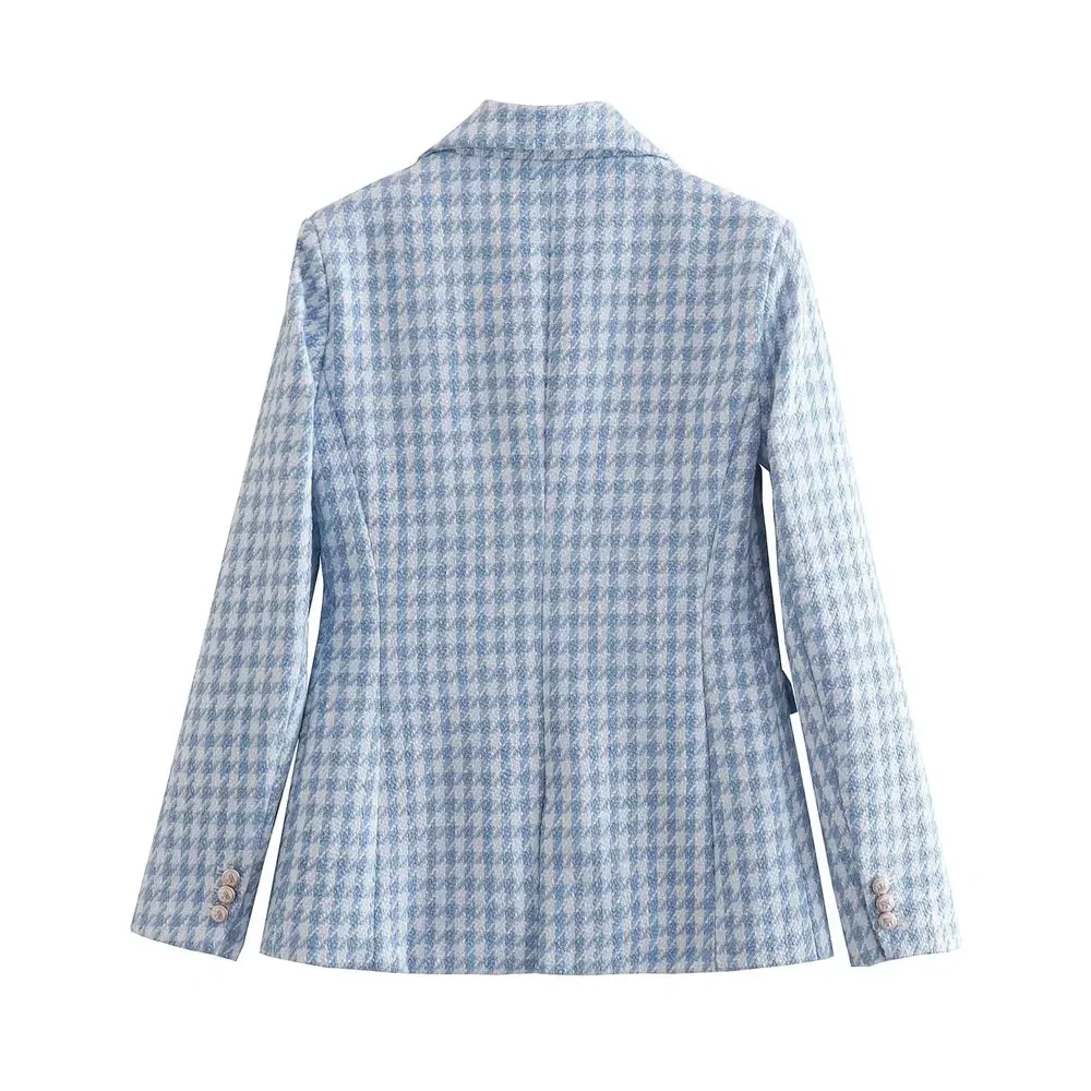Women Fashion Houndstooth Double Breasted Tweed Blazer Coat .