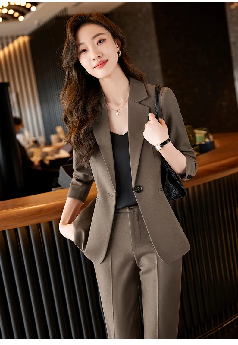 Office Lady Single Button Blazer Chic High Waisted Pants 2 Piece Set.