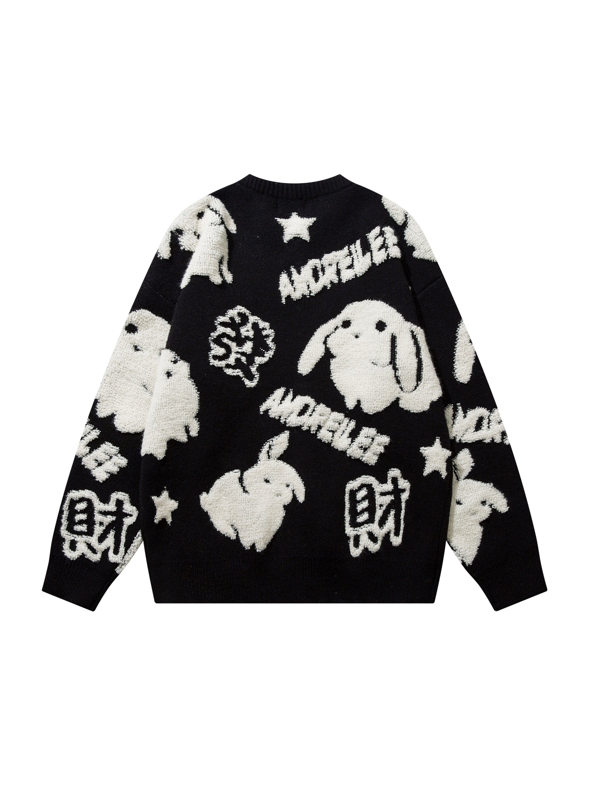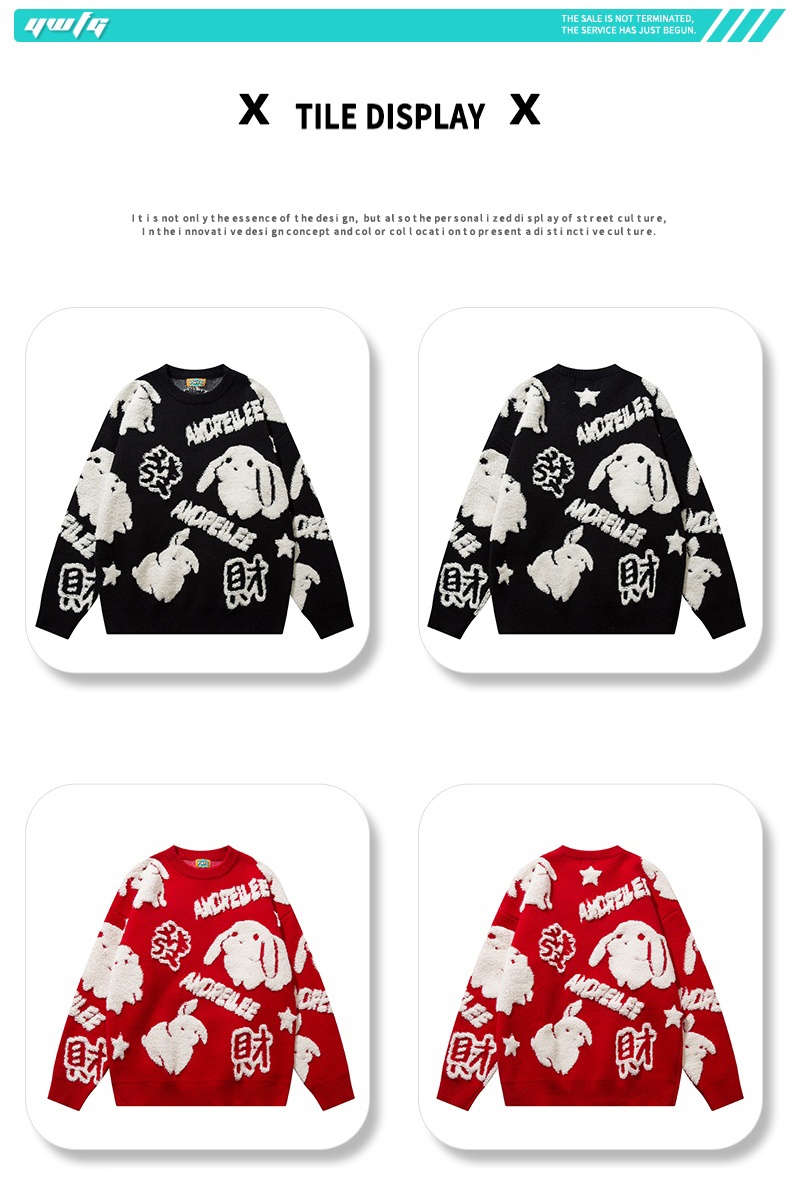 YWFG Cute Knitted Cute Rabbit & Wealth Chenille Embroidery Sweater,
